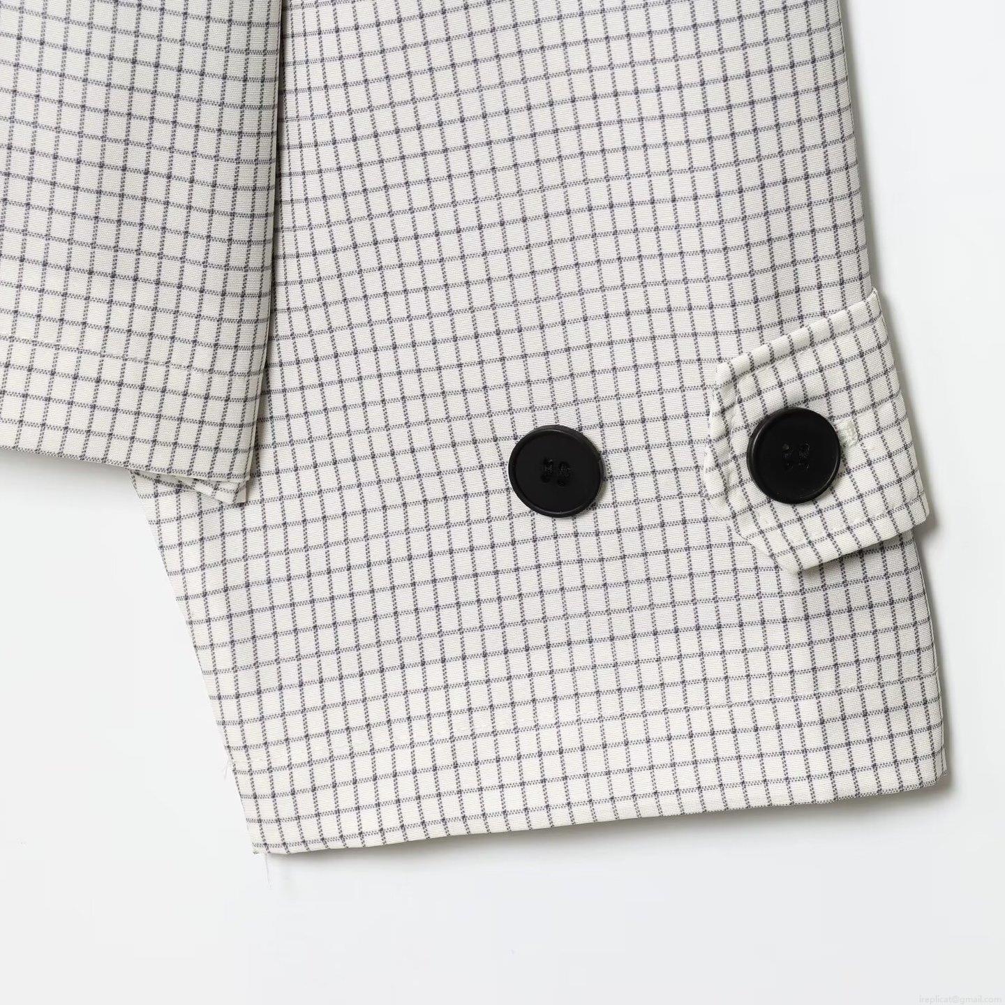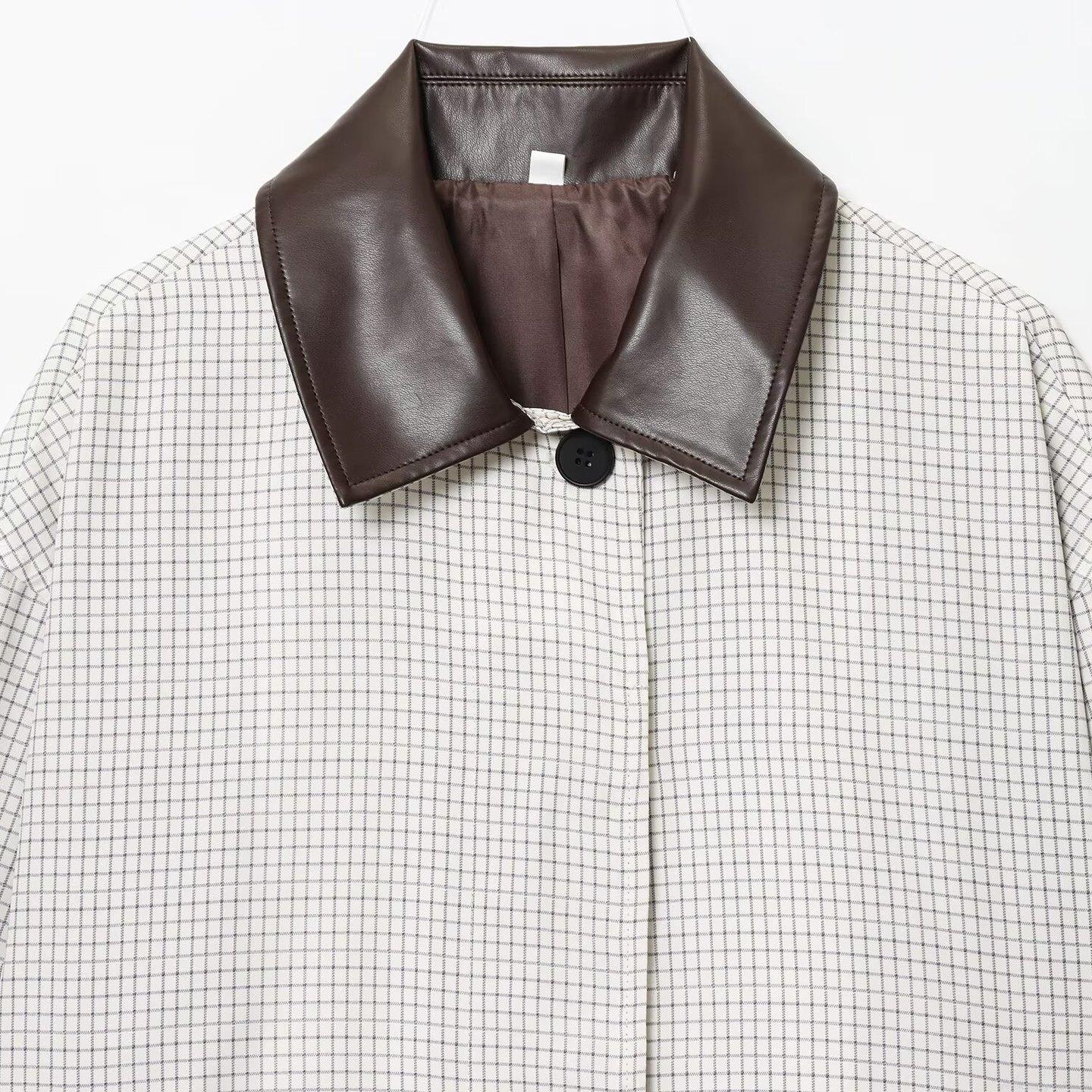 Women's Plaid Short Windbreaker Jacket With Brown Leather Collar Fashion Loose Checkered Outerwear Casual Long Sleeve Coat For Women Autumn