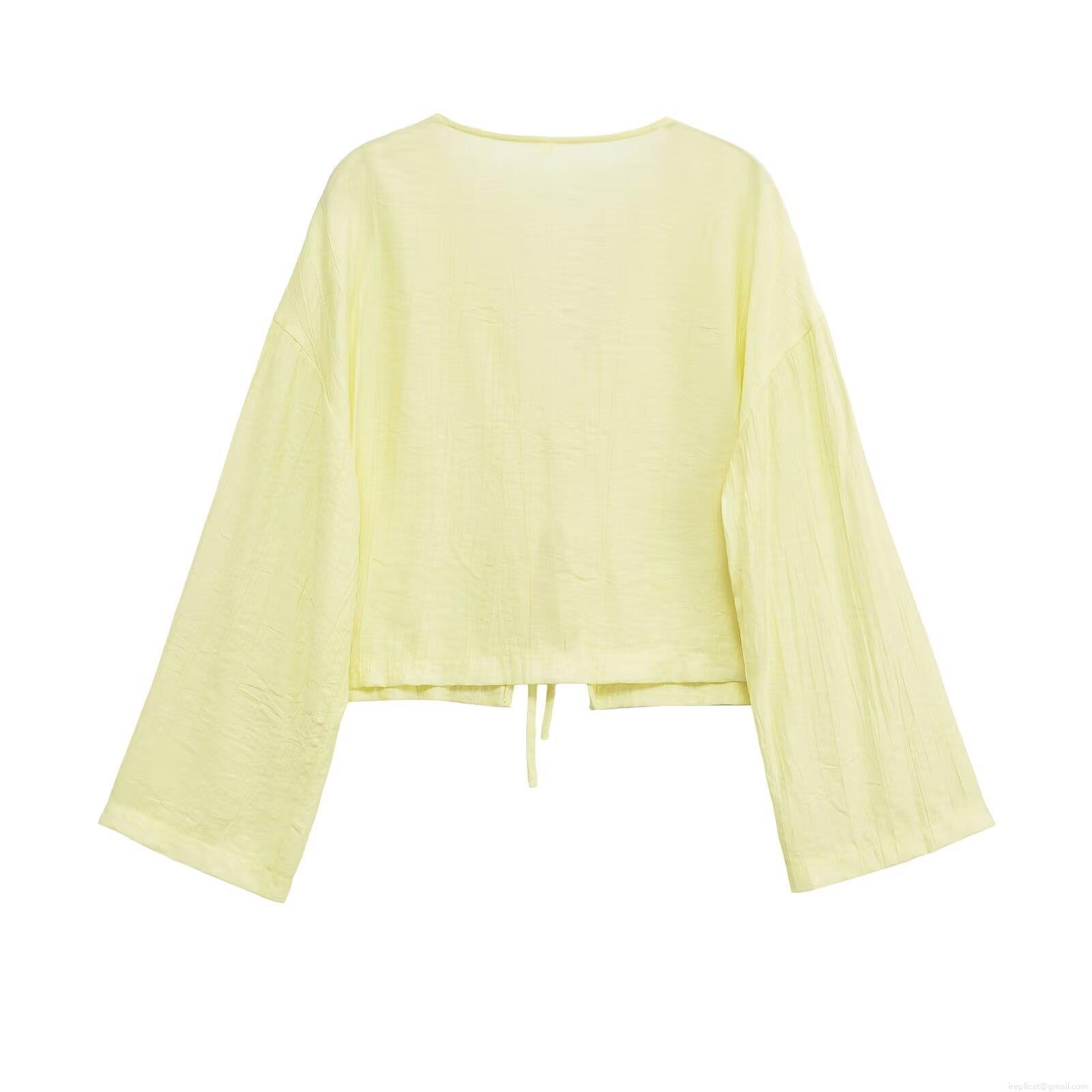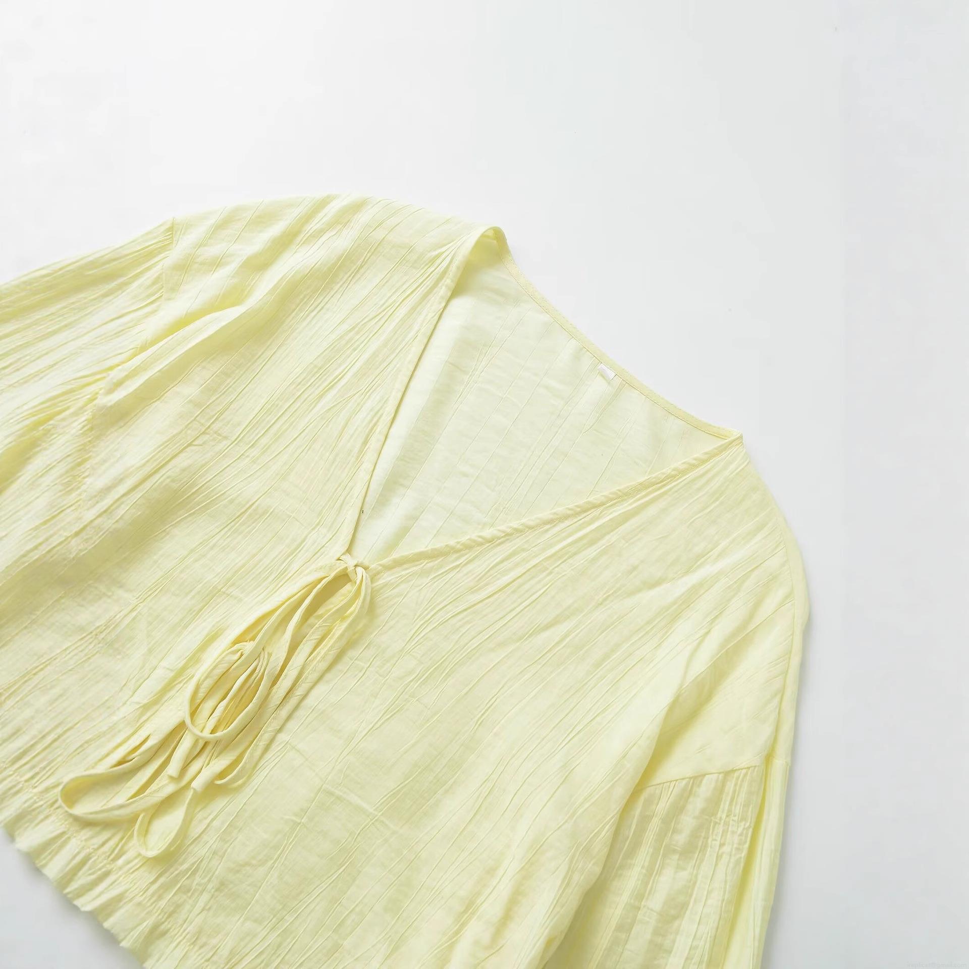 • Women's Pleated Long Sleeve Jacket Cardigan Polyester V-Neck Front Tie Up Lightweight Solid Color Casual Fashion Blouse Top For Women Daily Dating