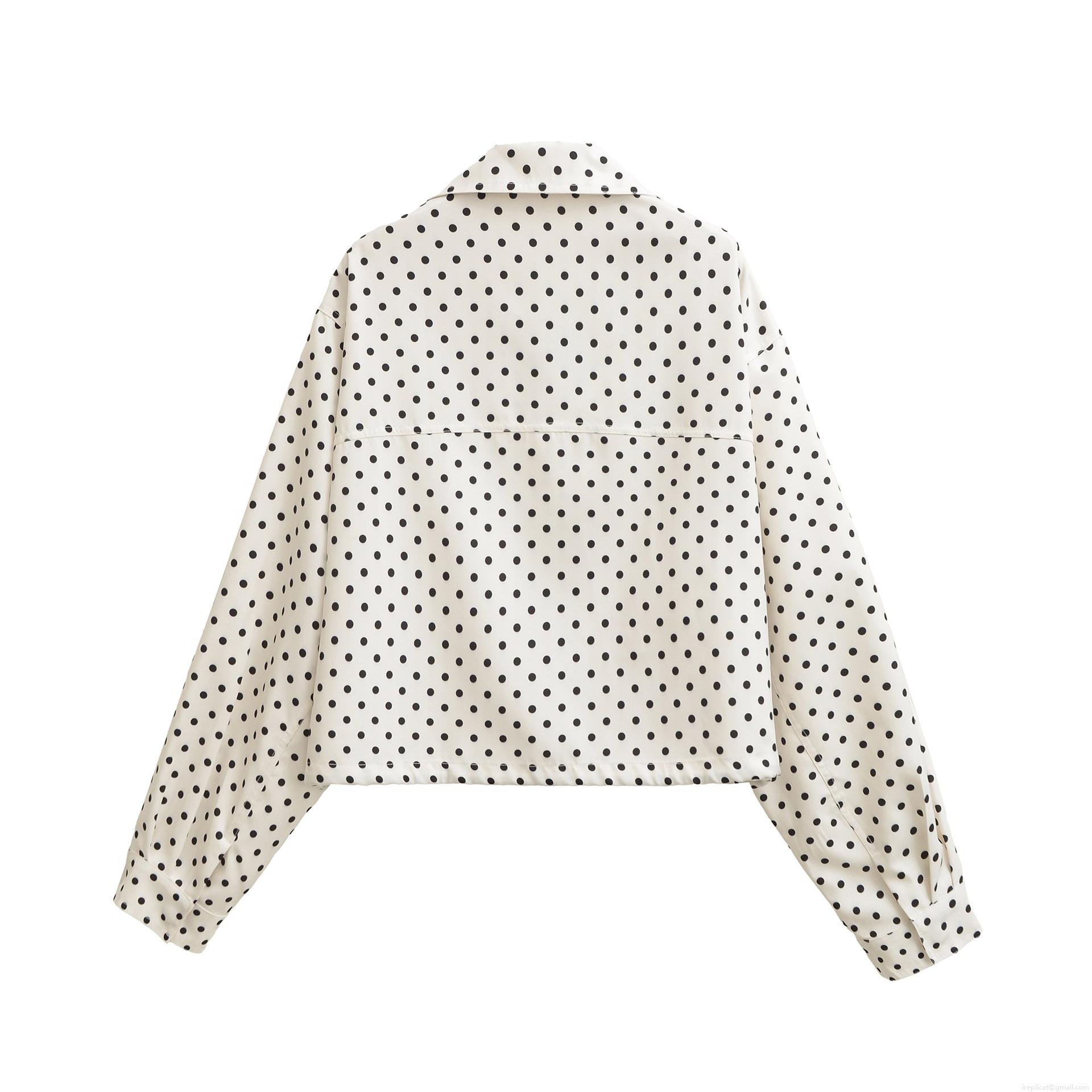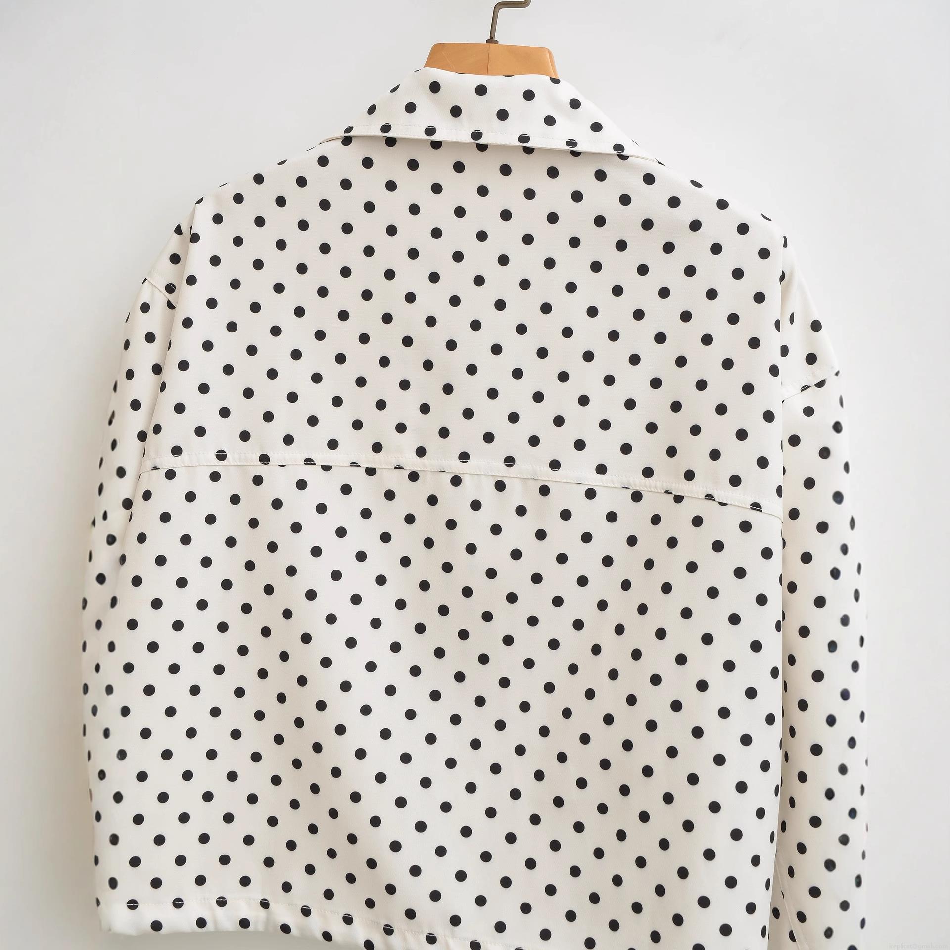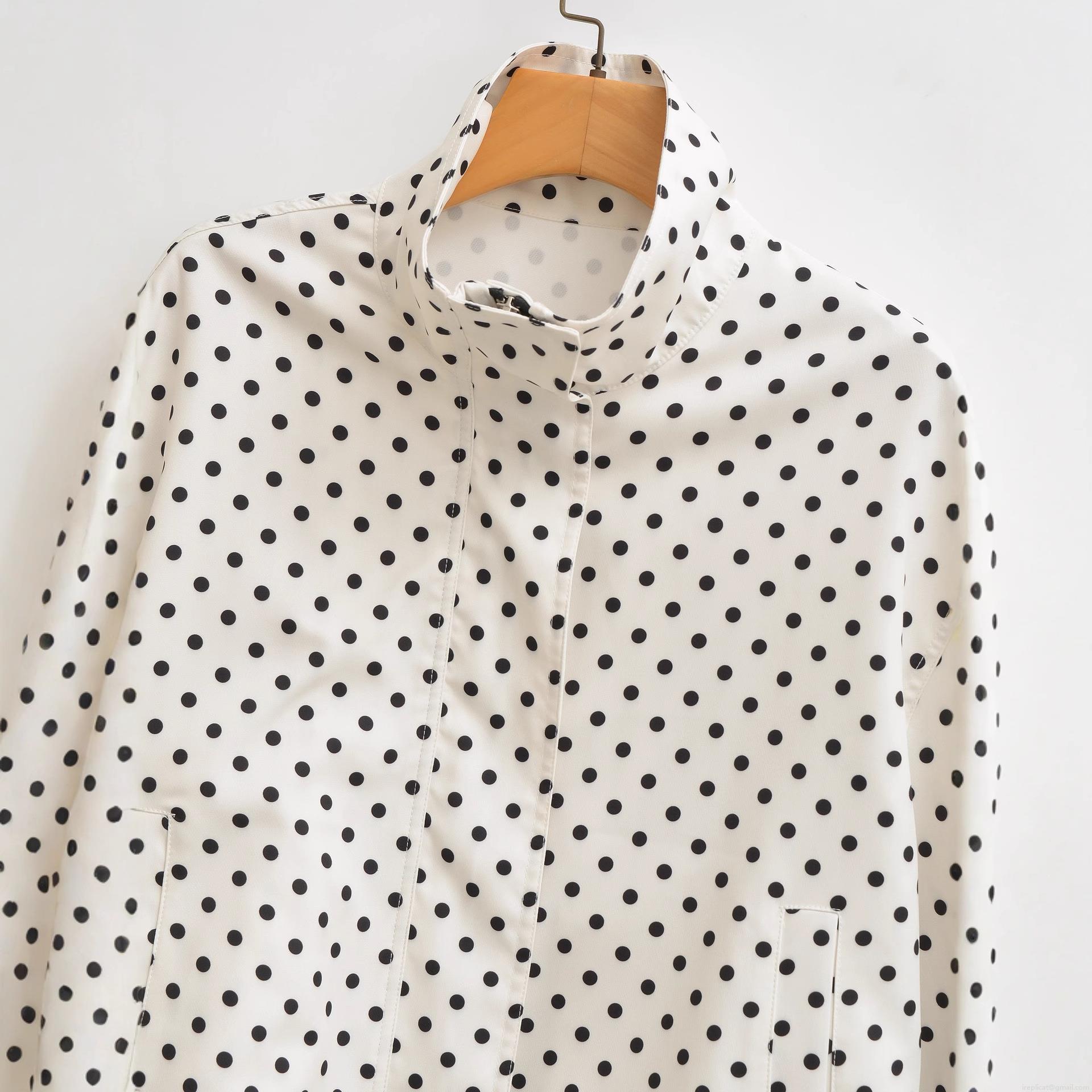 • Women's Polka Dot Zip Up Jacket Fashion Stand Collar Cropped Outerwear Polyester Long Sleeve Casual Streetwear Seersucker Coat For Spring Autumn