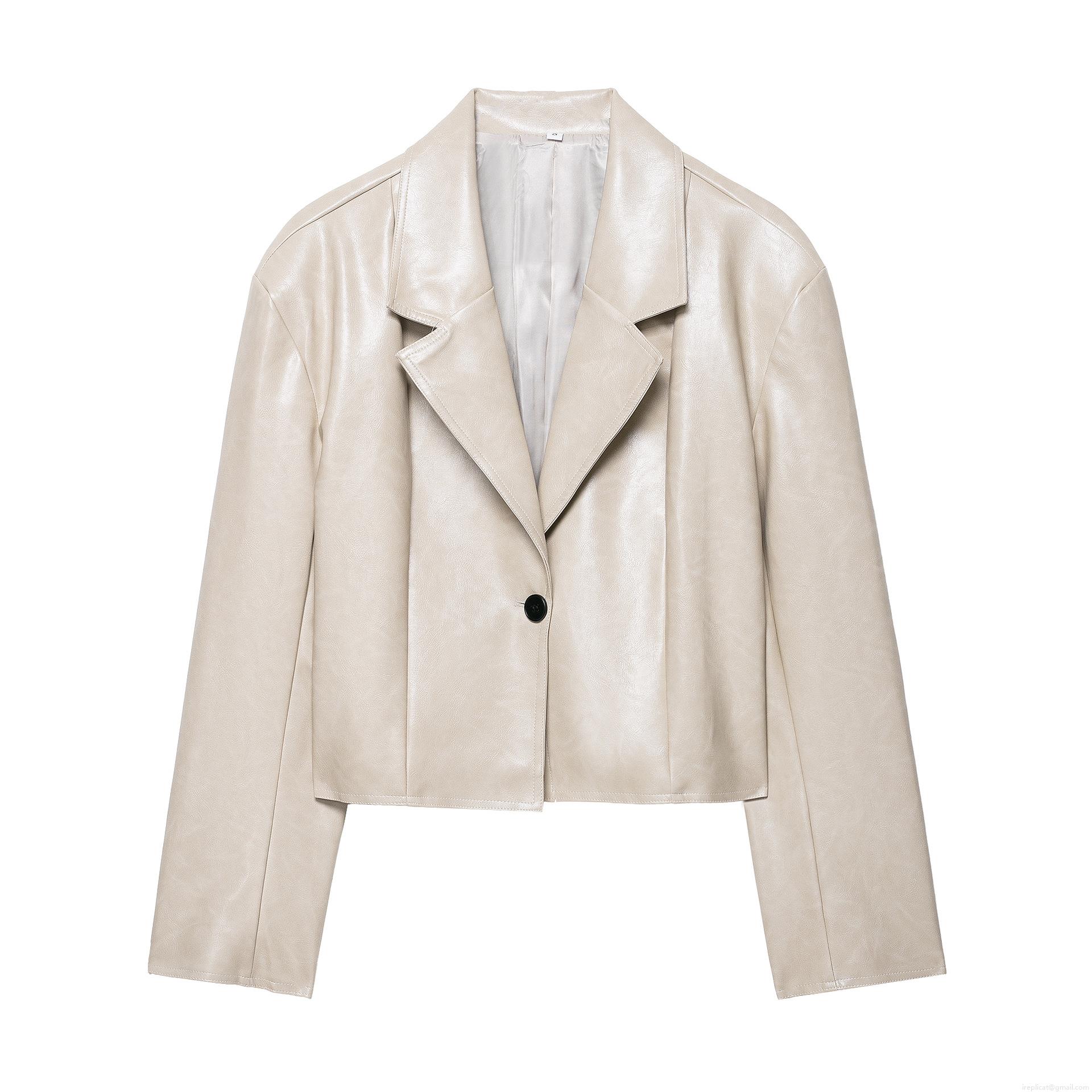 • Women's PU Faux Leather Jacket Fashion Lapel Long Sleeve Loose Blazer Short Coat With Polyester Lining For Street Daily Autumn Winter