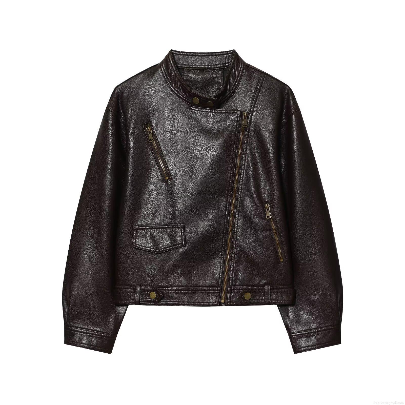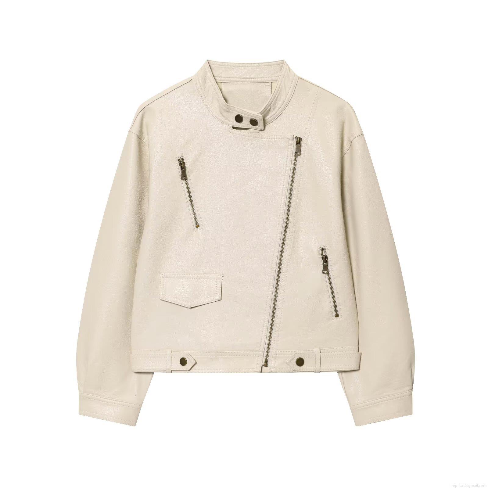 • Women's PU Faux Leather Motorcycle Jacket Stand Collar Zipper Decoration Long Sleeve Streetwear Baseball Uniform Coat With Polyester Lining For Spring Fall Ladies