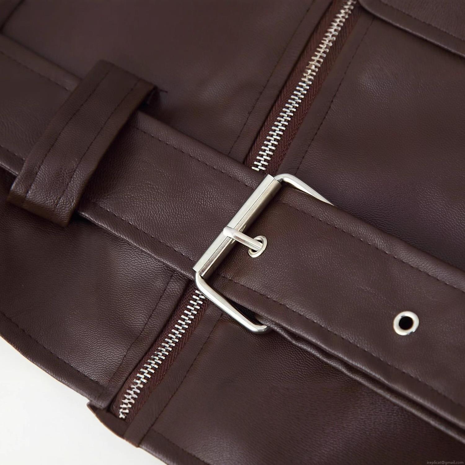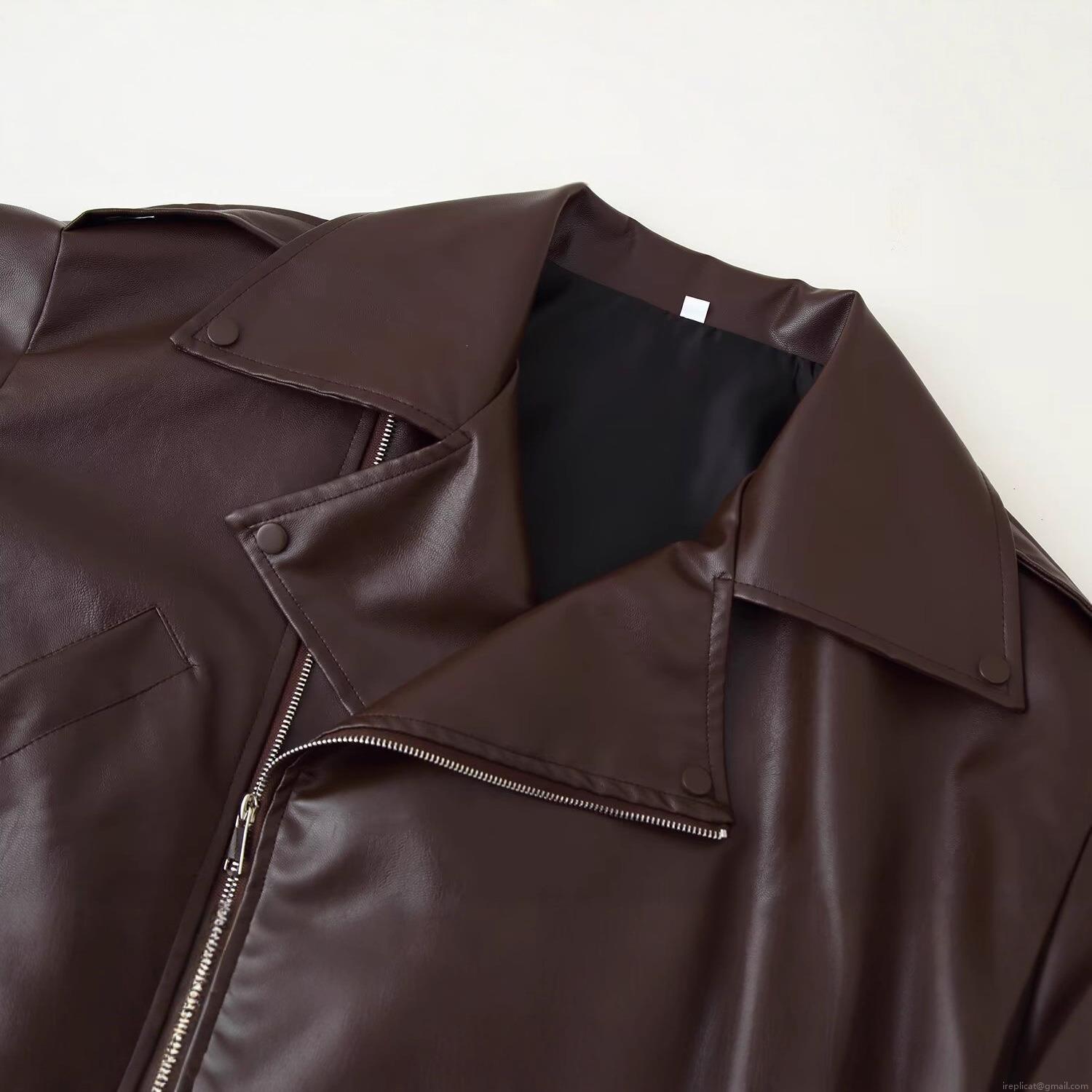 • Women's PU Leather Biker Jacket Long Sleeve Lapel Collar Belted Loose Fit Solid Color Coffee Moto Coat Streetwear Casual Outerwear With Pockets