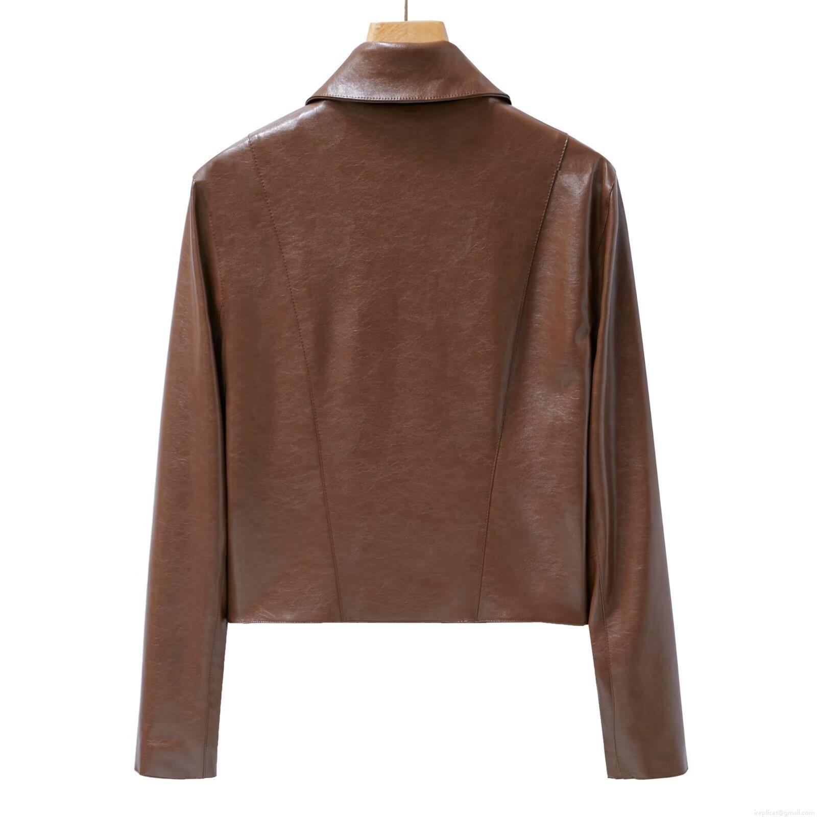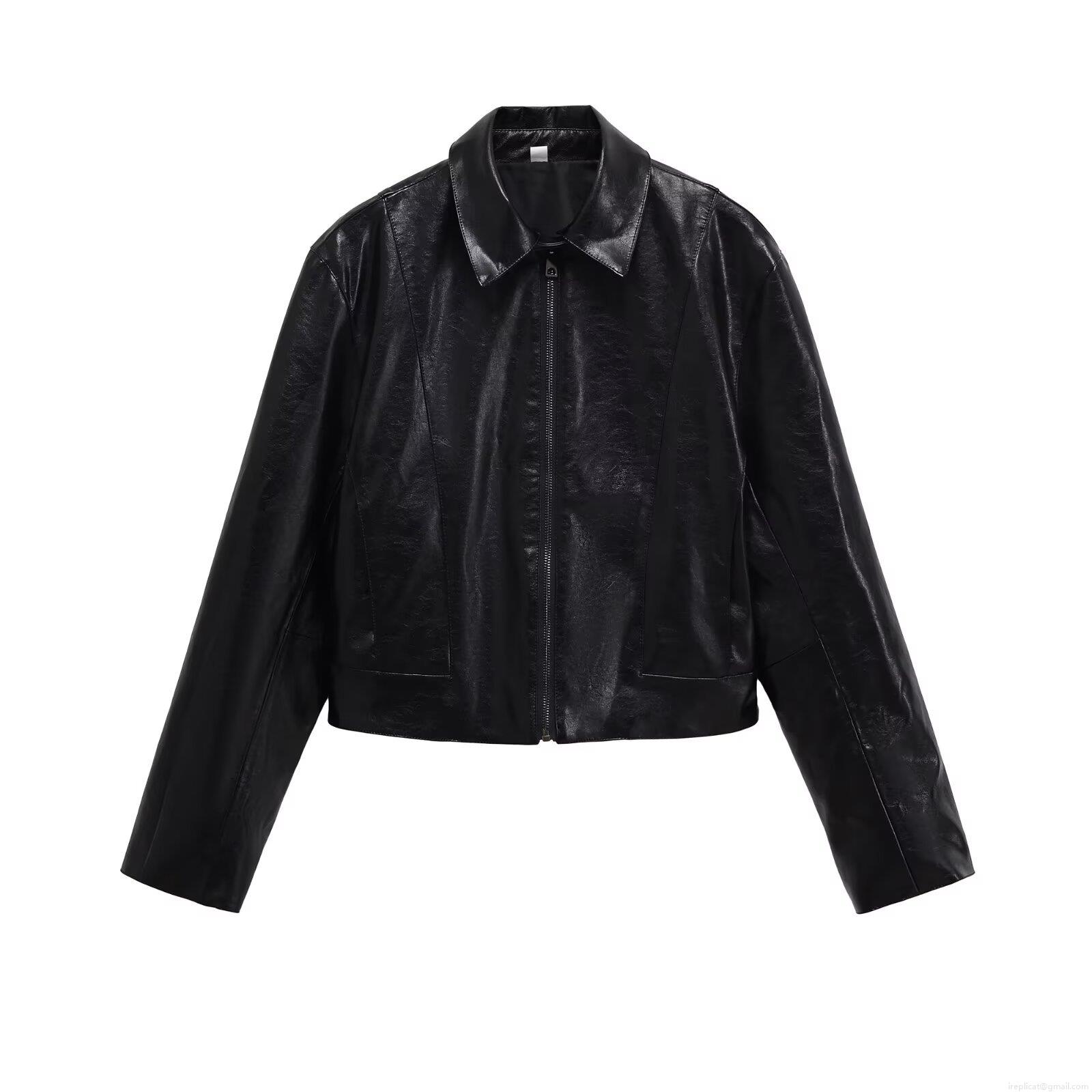 • Women's PU Leather Jacket Fashion Lapel Long Sleeve Zipper Biker Coat Solid Color Streetwear Fall Outerwear With Polyester Lining For Women Amber Black