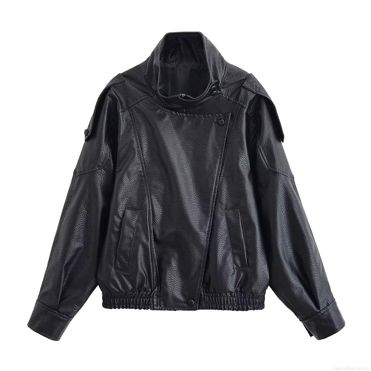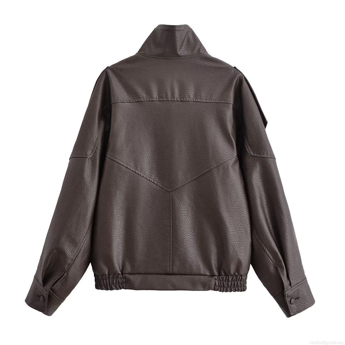 • Women's PU Leather Jacket Pebble Grain Faux Leather Stand Collar Zip Up Oversized Biker Jacket Vintage Autumn Winter Casual Coat Streetwear Outwear For Women