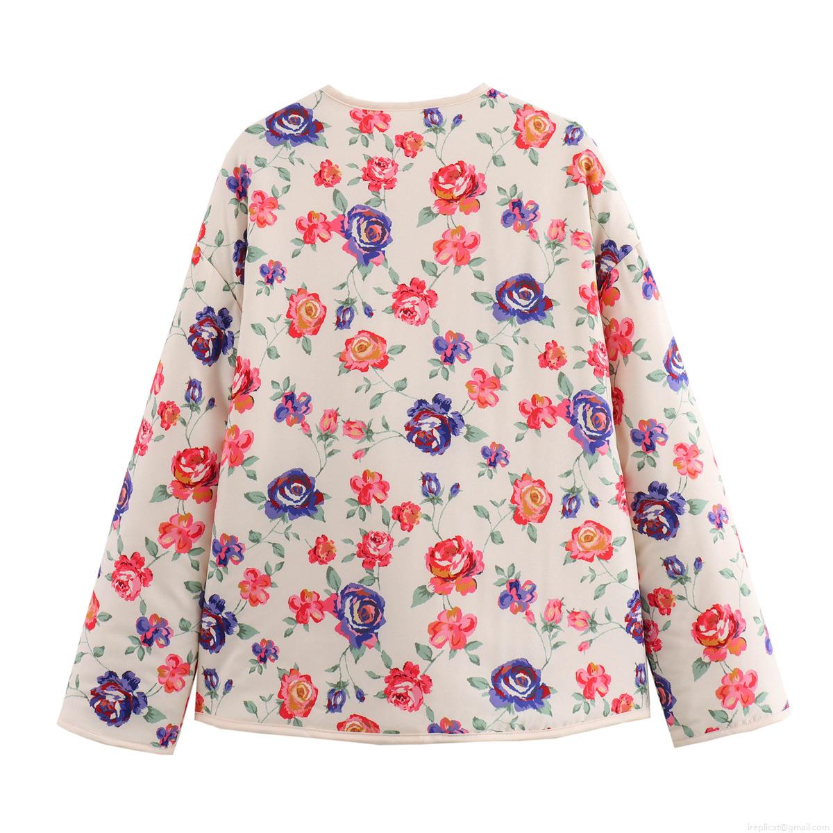 • Women's Quilted Floral Print Cotton Jacket Vintage Long Sleeve Round Neck Padded Coat With Pockets Casual Loose Streetwear Outerwear For Spring Autumn
