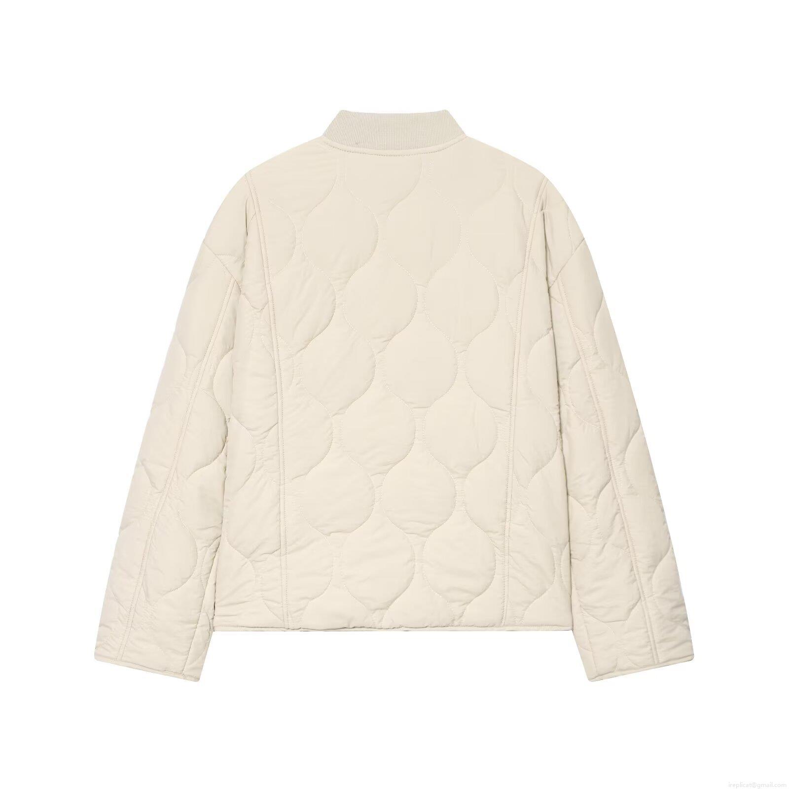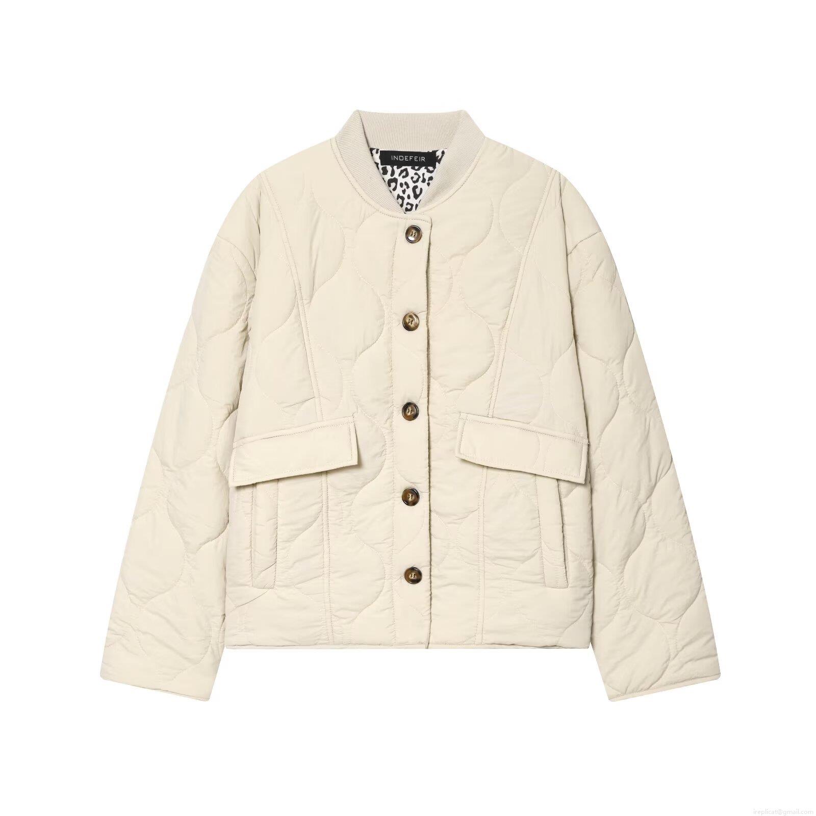 • Women's Quilted Jacket Lightweight Cotton Blend Coat With Leopard Print Lining Ribbed Collar Single Breasted Buttons Large Pockets Fashion Casual Outerwear For Fall Winter
