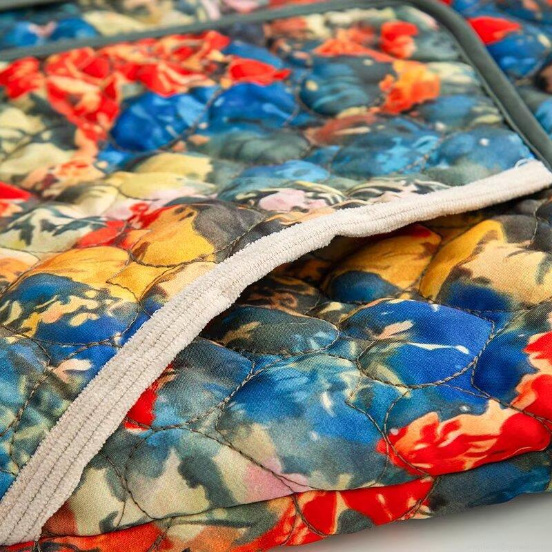 Geometric Shapes, Floral Pattern, Quilting, Printing, Snap Fasteners, Stand-up Collar, Abstract Oil Painting