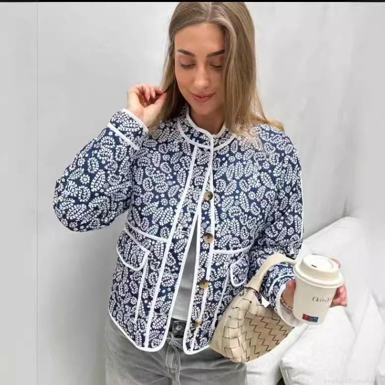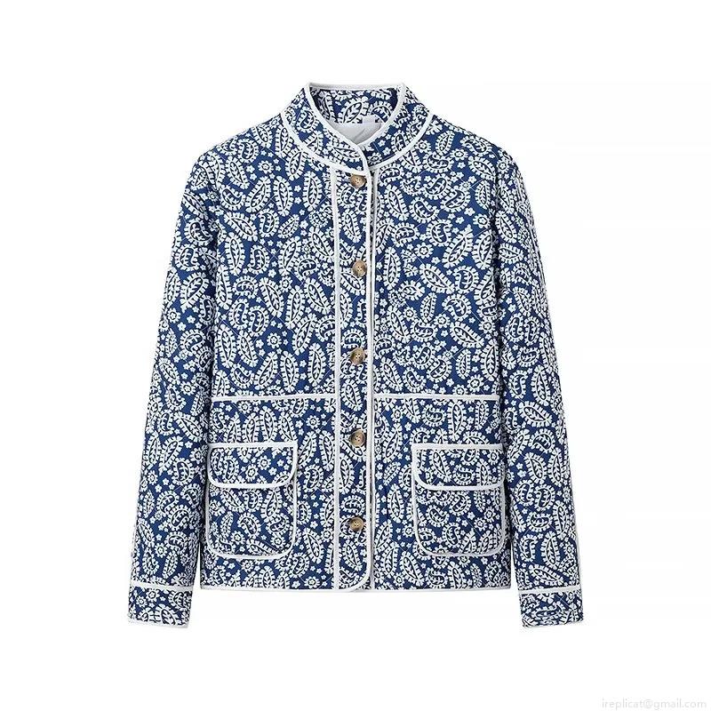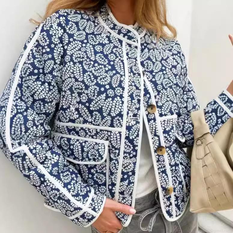 • Women's Quilted Paisley Jacket Vintage Floral Print Cotton Padded Short Coat With Buttons Standing Collar For Casual Streetwear Ethnic Style