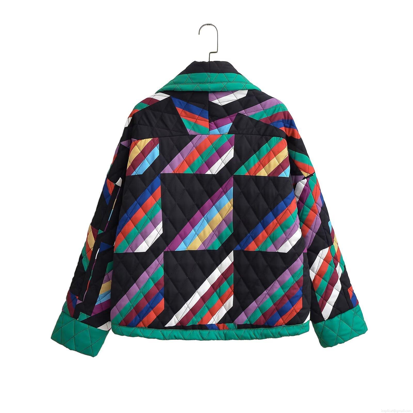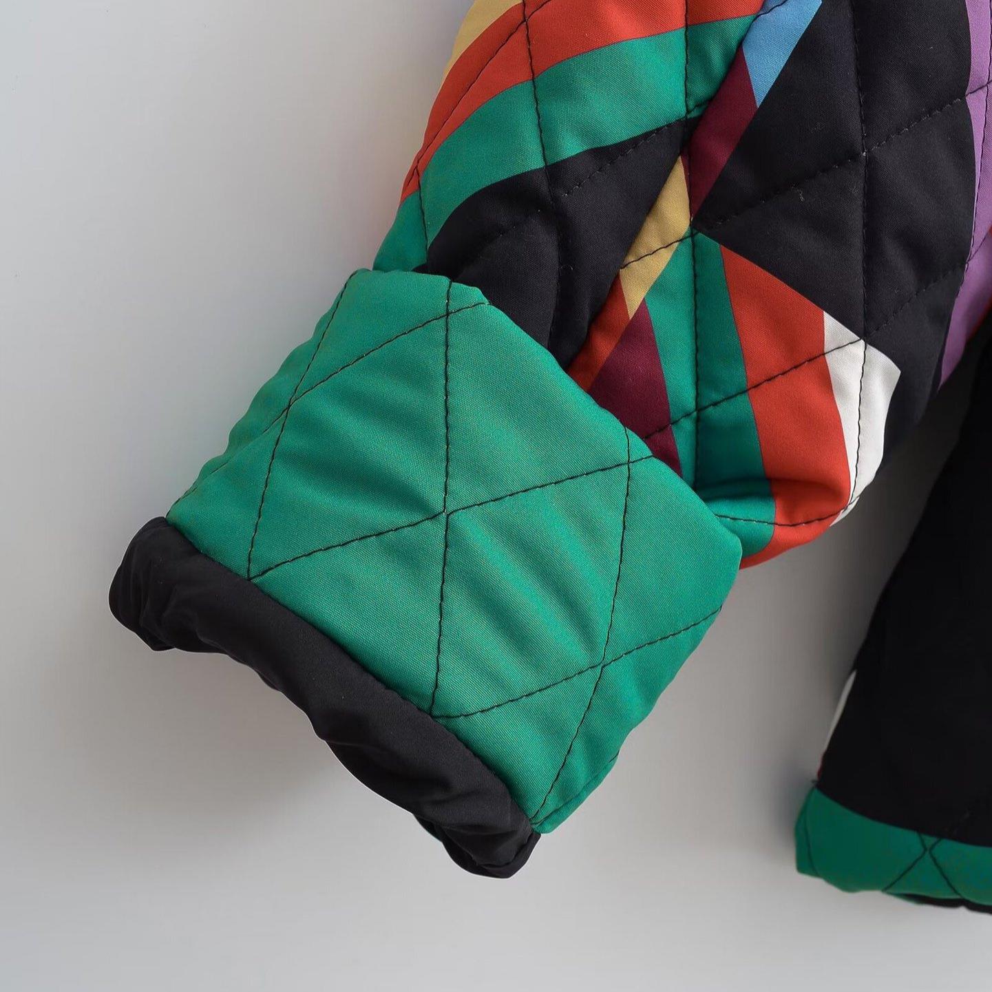 • Women's Quilted Patchwork Jacket Vintage Geometric Print Loose Open Front Long Sleeve Casual Padded Outerwear Coat For Winter