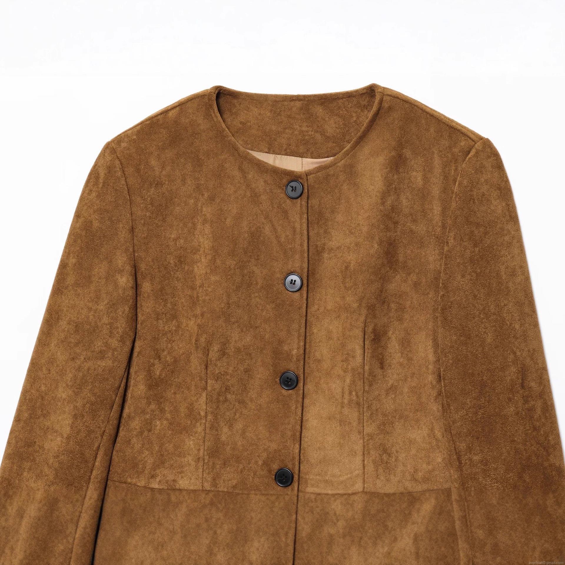 • Women's Retro Brown Faux Suede Jacket Round Neck Long Sleeve Single Breasted Bomber Coat Western Streetwear Outerwear For Autumn Winter Ladies