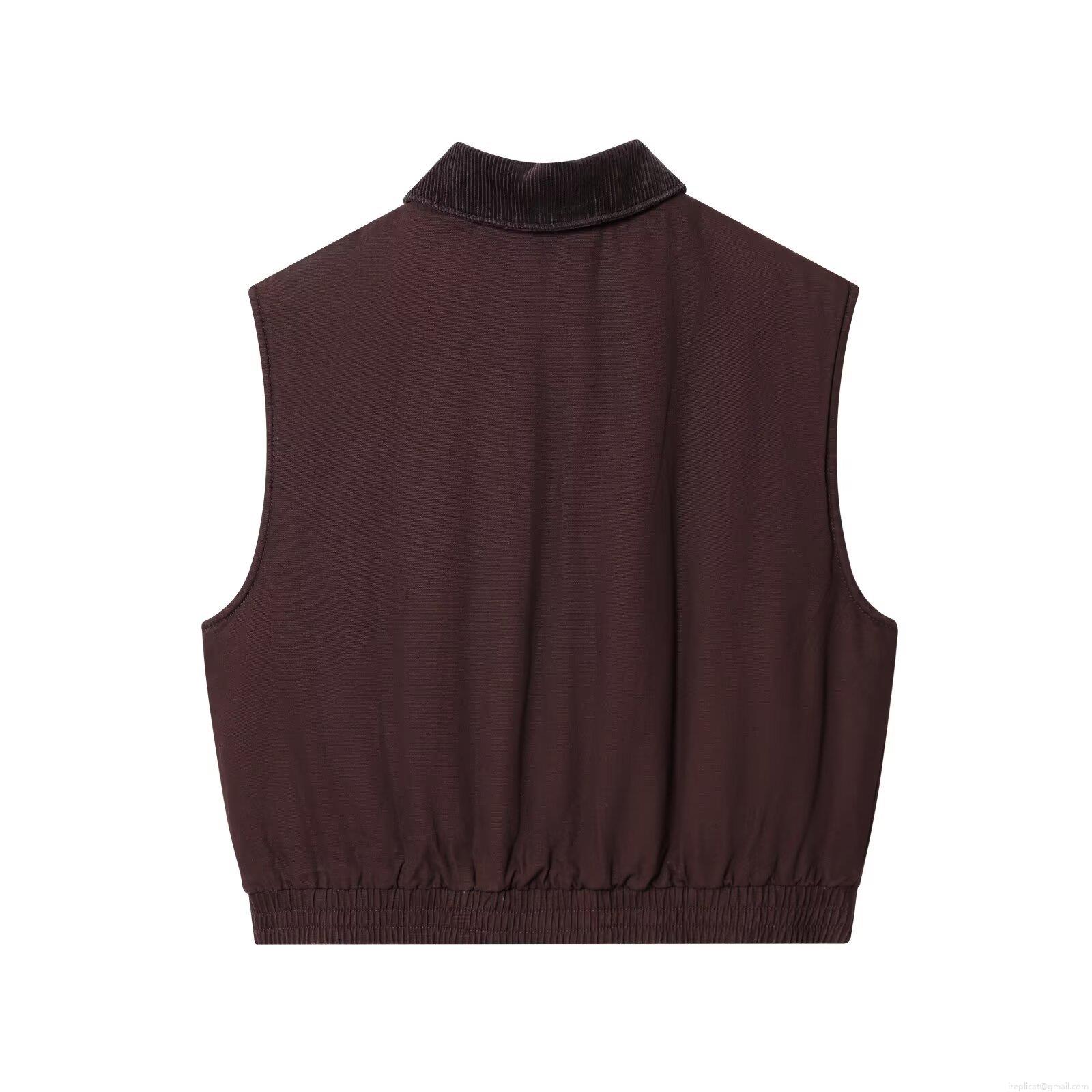 • Women's Retro Corduroy Collar Canvas Vest Sleeveless Zip Up Jacket Loose Fit Casual Fall Waistcoat Outerwear With Elastic Hem