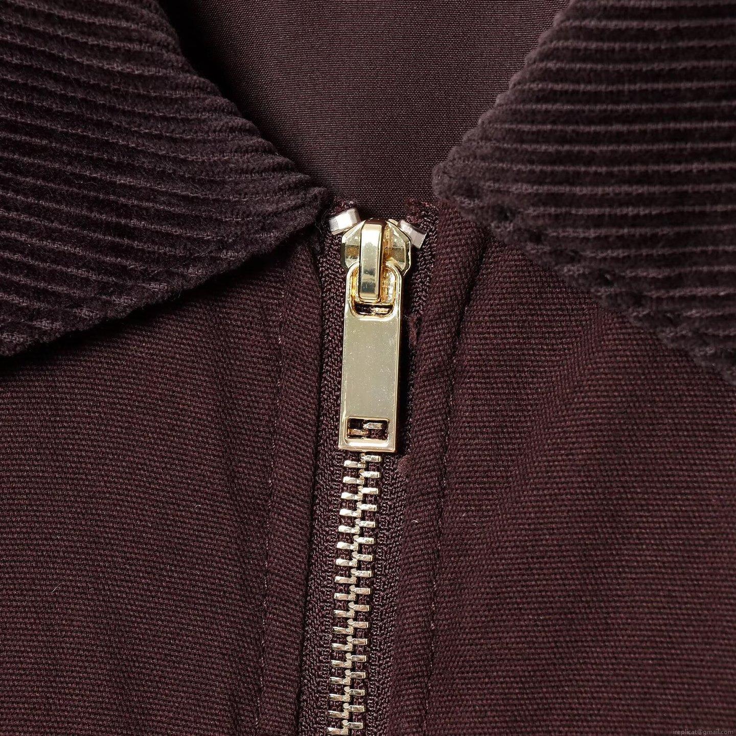 Solid Color, Workwear Style, Metal Zipper, Corduroy Patchwork Lapel, Elastic Drawstring Hem