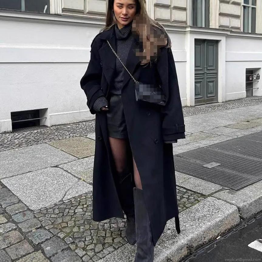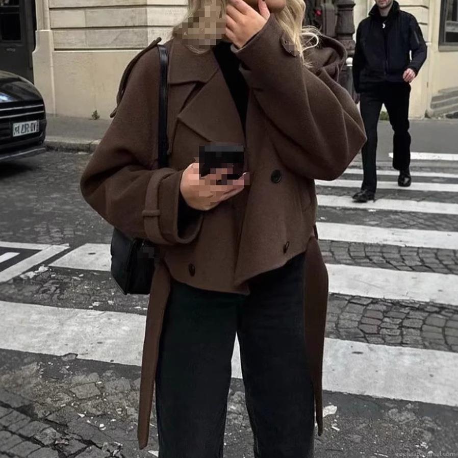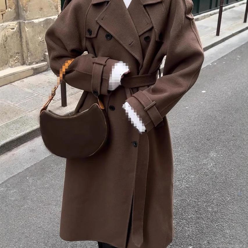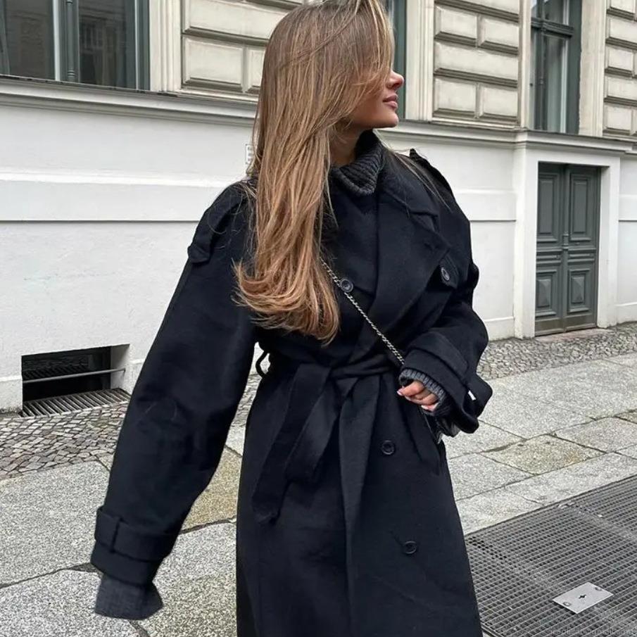 • Women's Retro Elegant Polyester Wool Like Double Breasted Jacket Coat With Belt Lapel Collar Long Sleeve Casual Office Commuter Vintage Outerwear