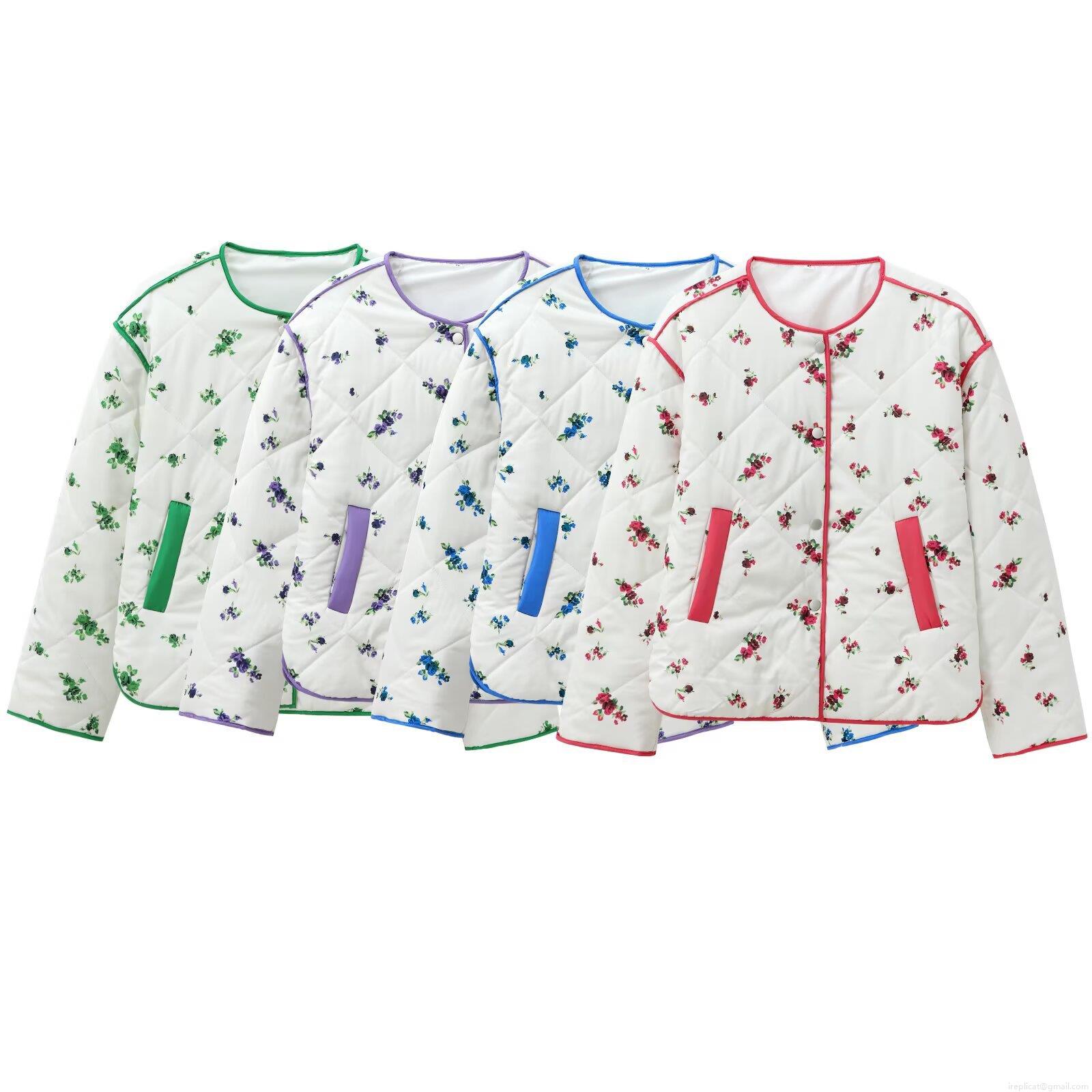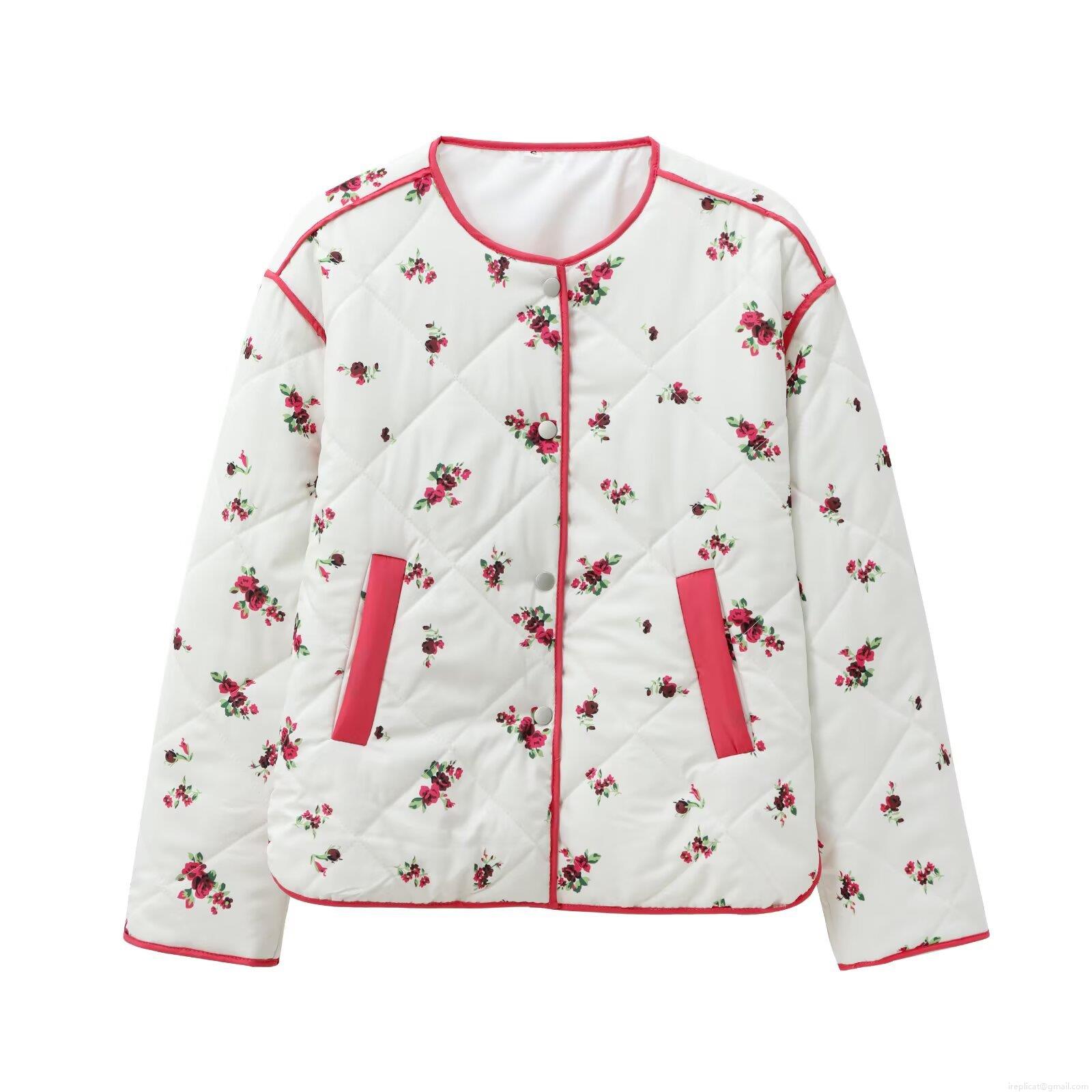 Floral Pattern, Quilting, Plants And Flowers, Single-breasted, Contrast Color Edging, Appliqué Decoration
