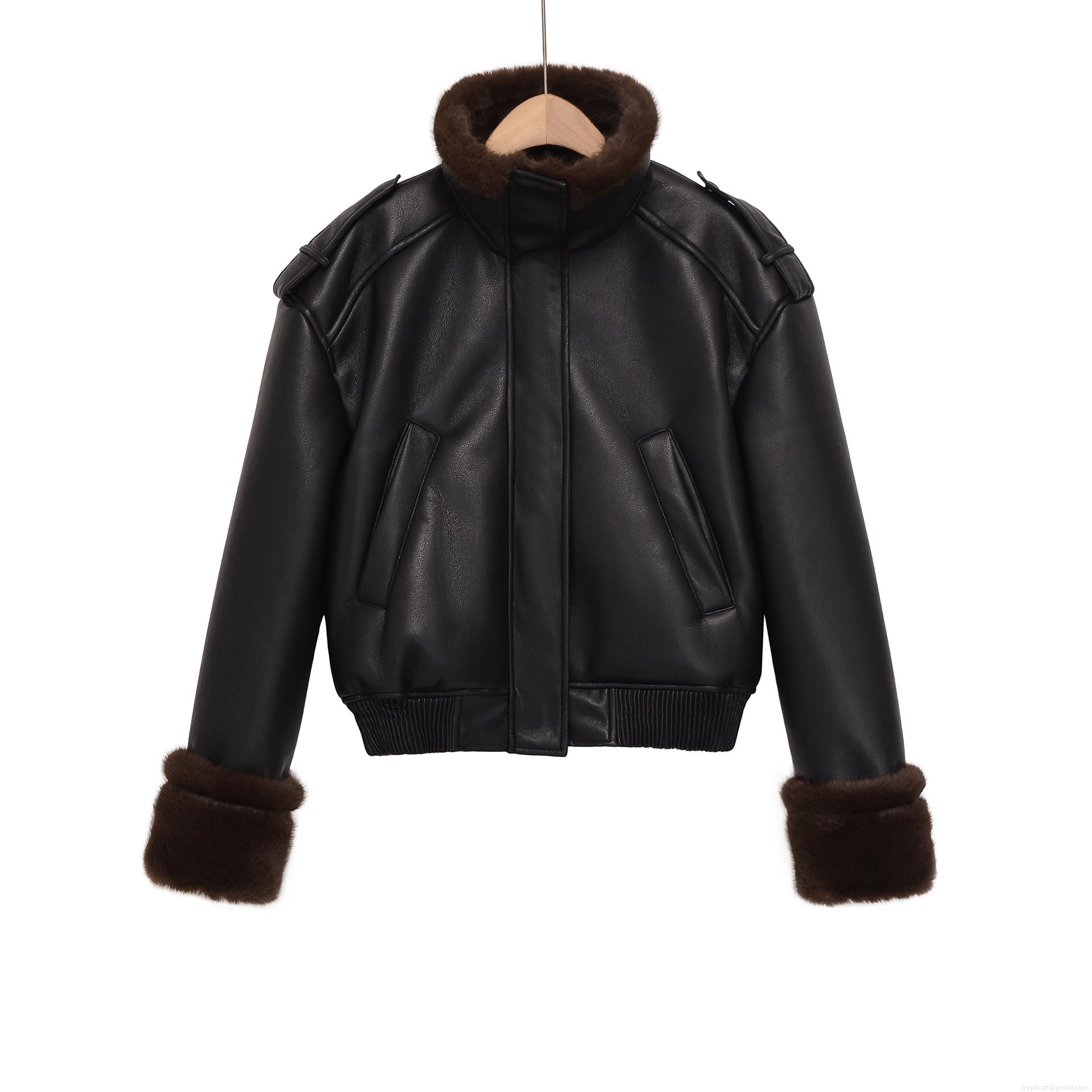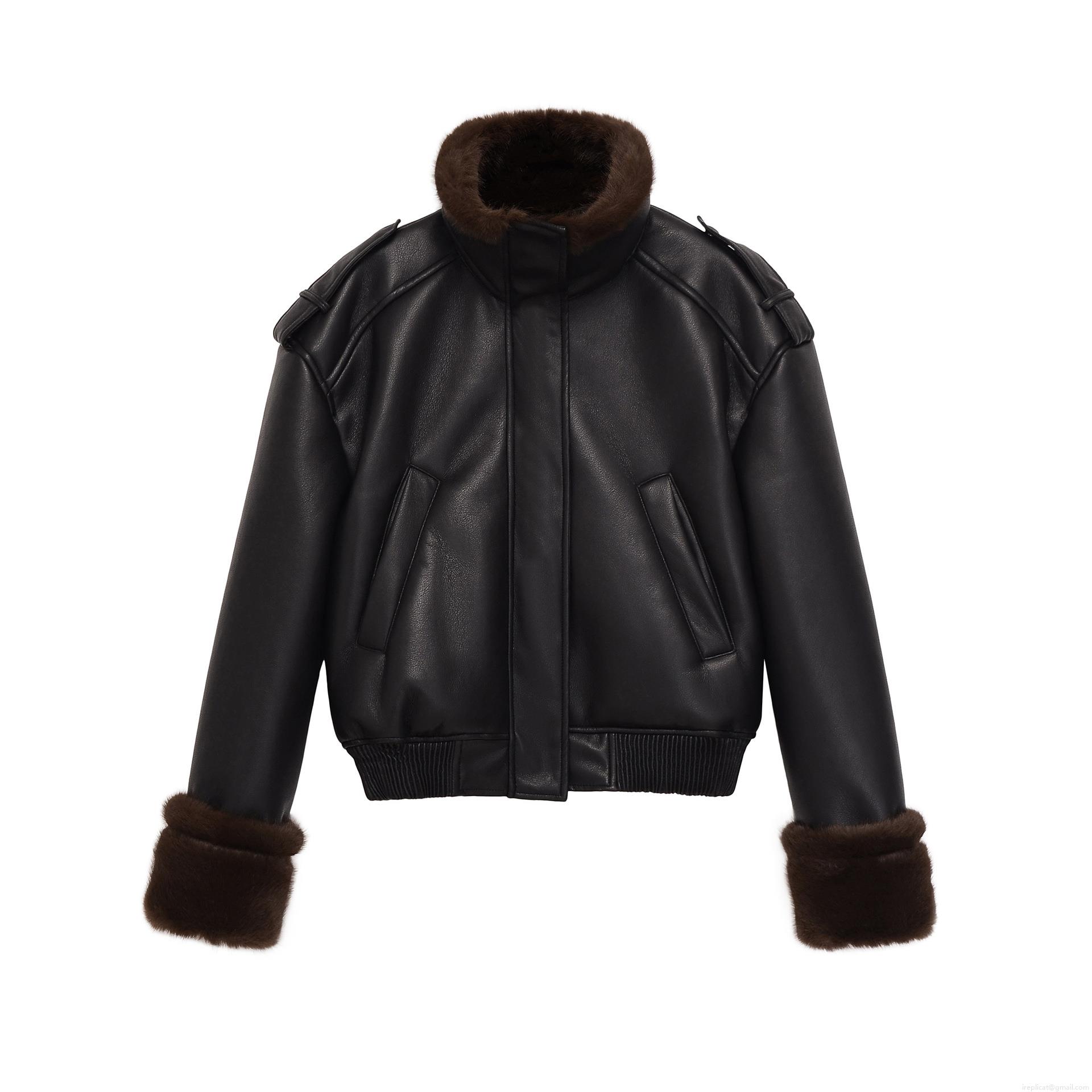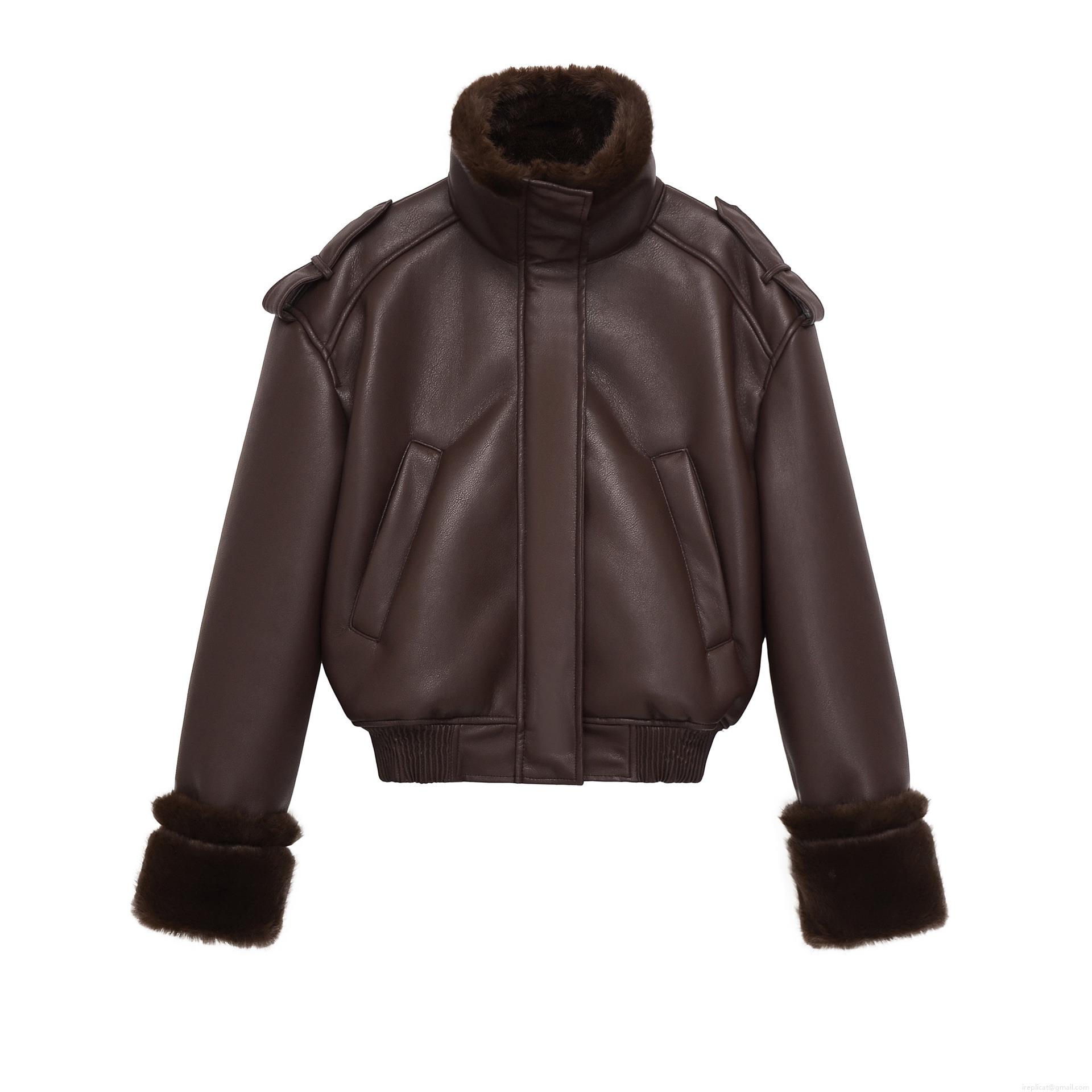 • Women's Retro Faux Leather Aviator Jacket With Faux Fur Collar Warm Winter Short Biker Bomber Coat For Women Fashion Outwear Black Coffee
