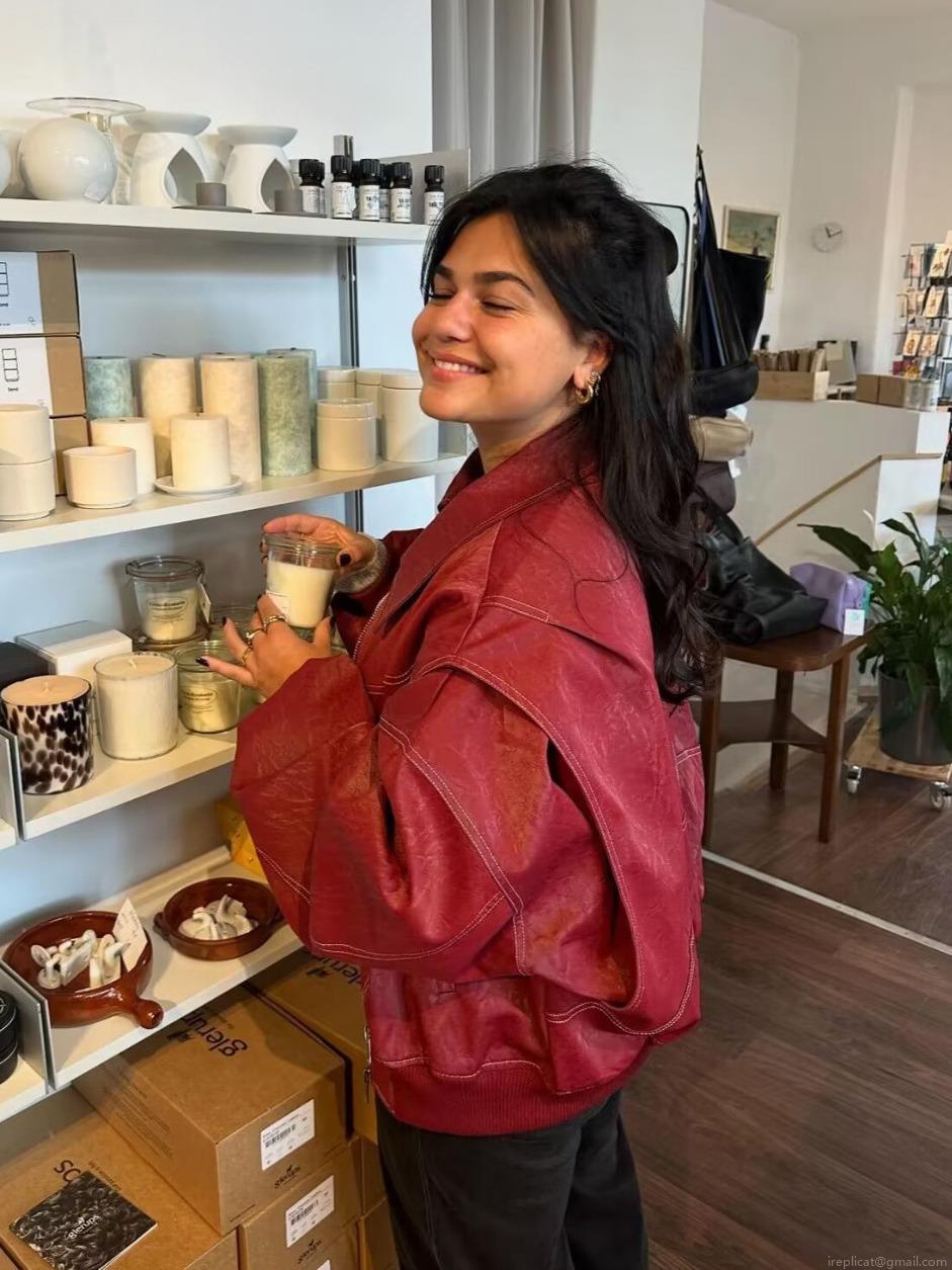 • Women's Retro Faux Leather Jacket Loose Contrast Stitching PU Biker Coat Oversized Long Sleeve Streetwear Outerwear For Autumn Winter