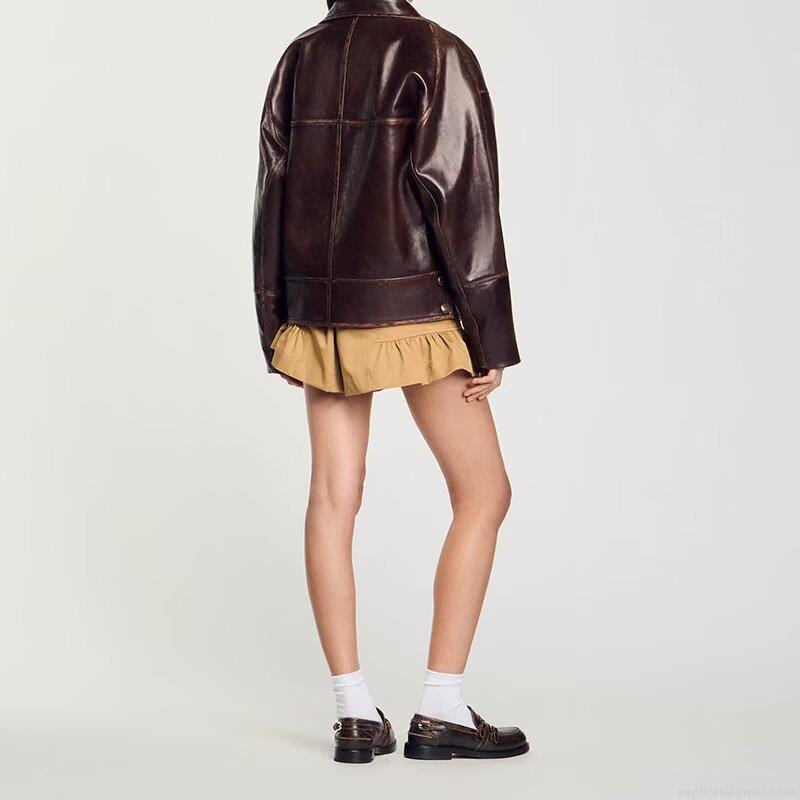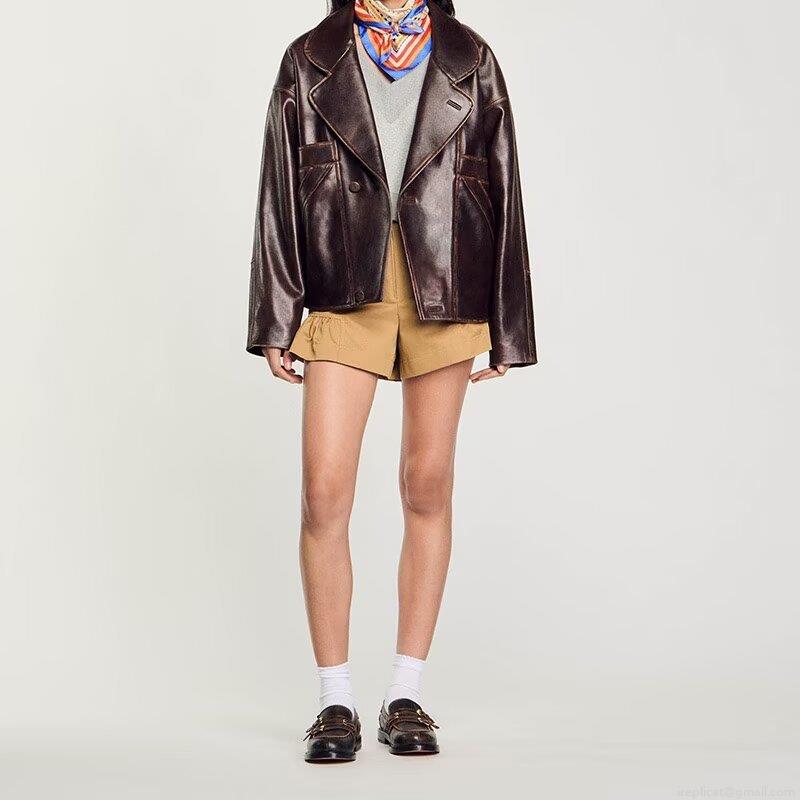 Solid Color, Belt, Lapel, Single-breasted, Leather Texture, Splicing Seams