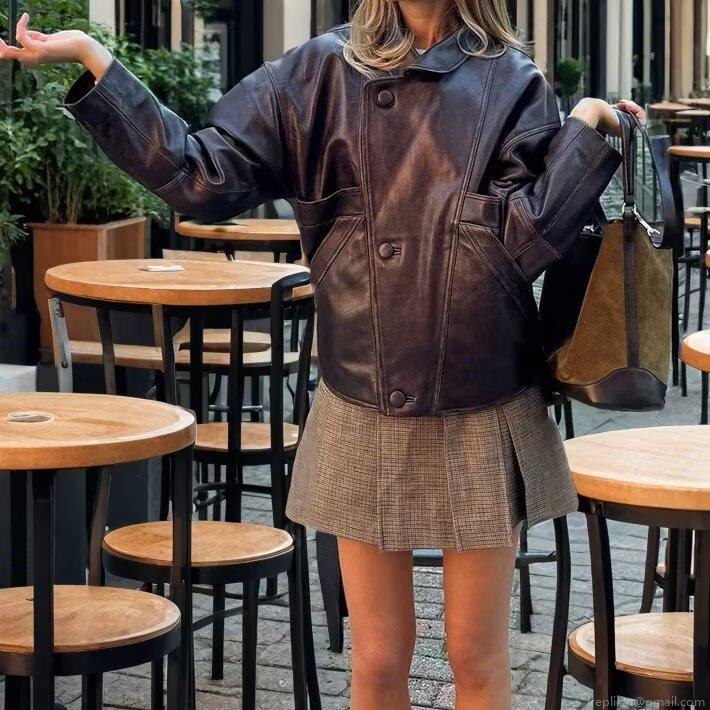 • Women's Retro Faux PU Leather Jacket Loose Fit Lapel Button Down Coat Vintage Casual Streetwear Long Sleeve Outerwear For Women Commuting