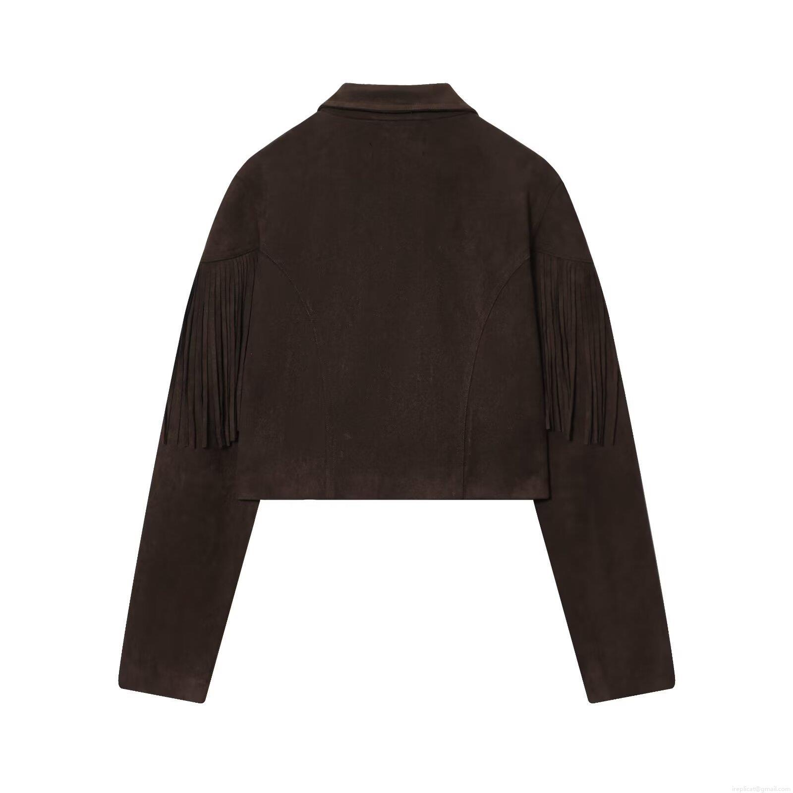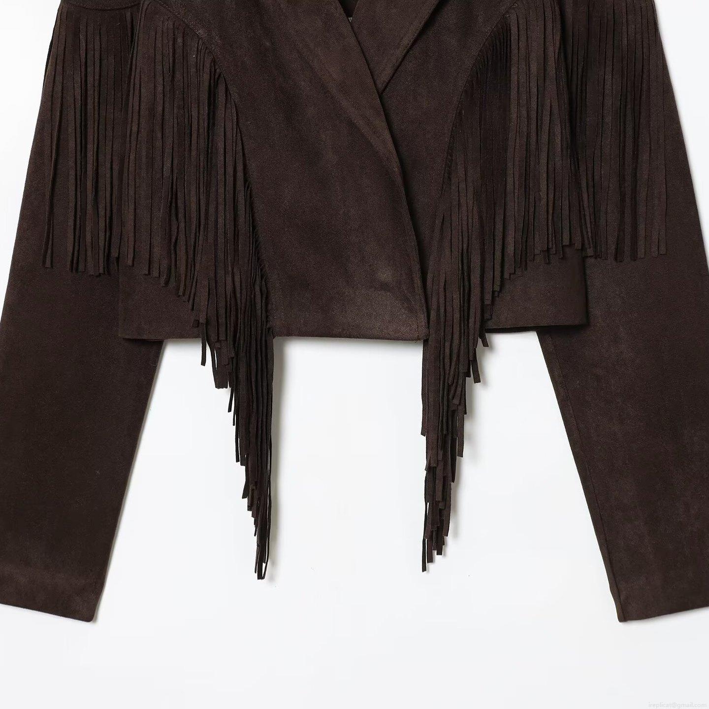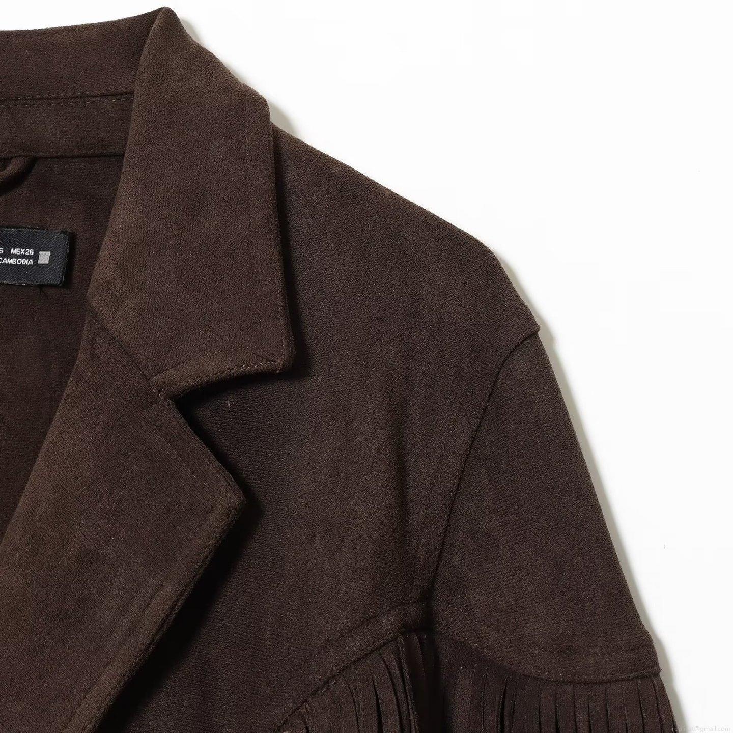 • Women's Retro Faux Suede Fringe Jacket Short Lapel Long Sleeve Solid Color Outwear For Party Daily Casual Bohemian Style Coat