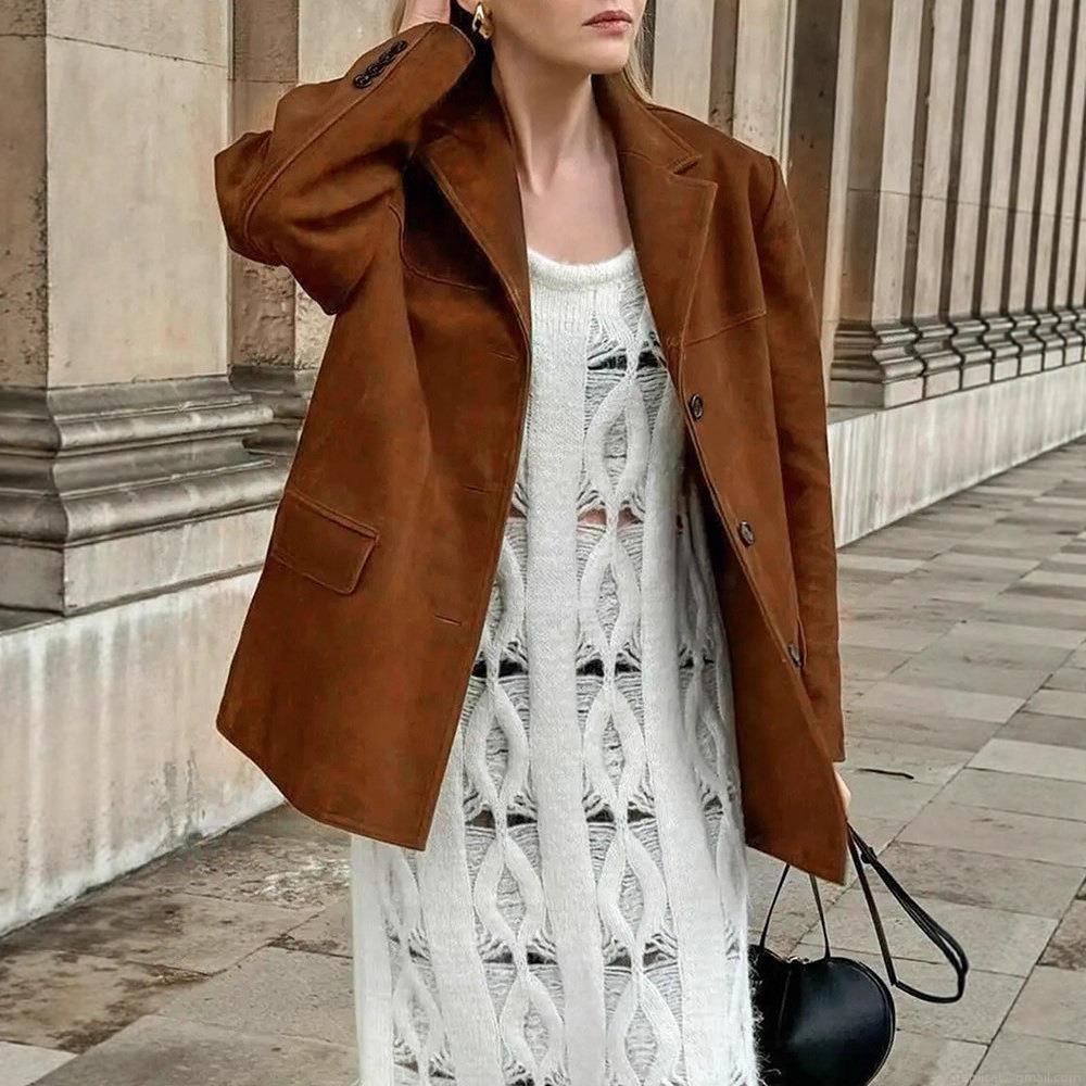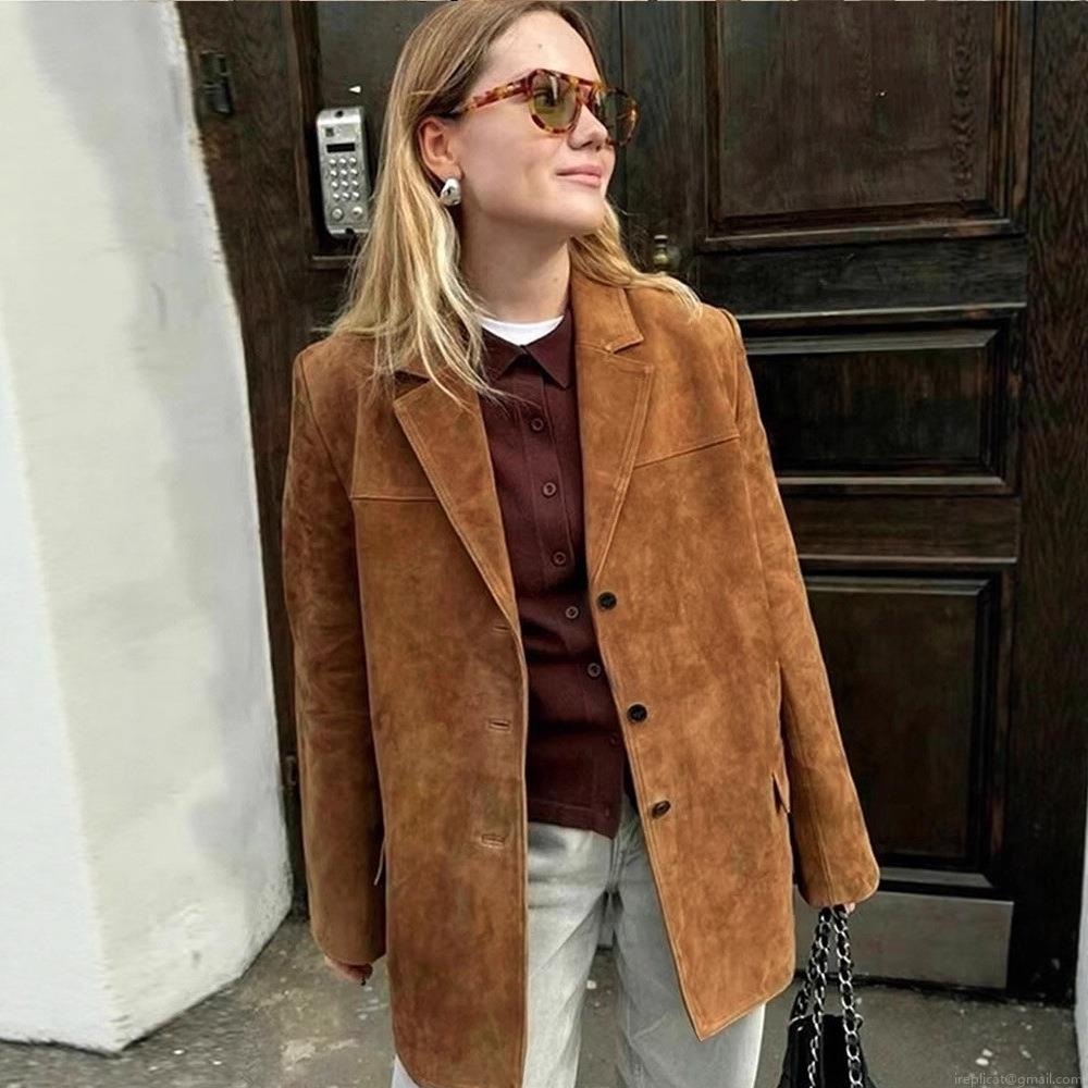Women's Retro Faux Suede Jacket Loose Lapel Single Breasted Coat Windproof British Style Streetwear Outerwear For Autumn Winter