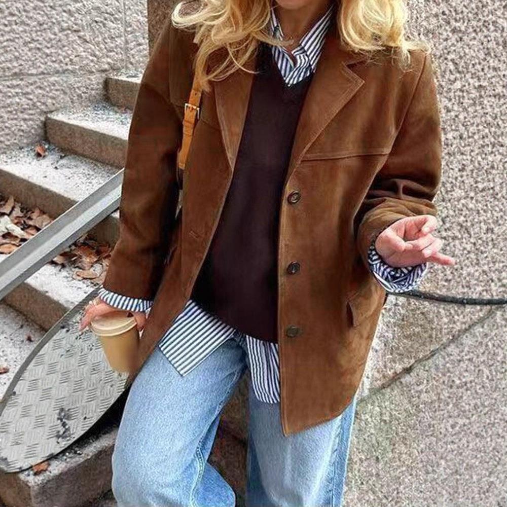 • Women's Retro Faux Suede Jacket Loose Lapel Single Breasted Coat Windproof British Style Streetwear Outerwear For Autumn Winter