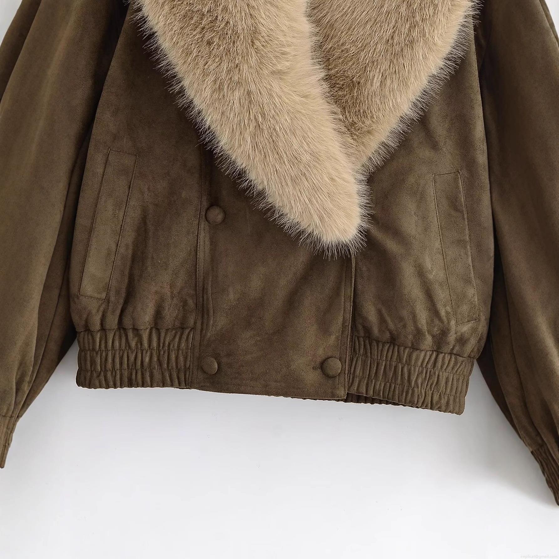 • Women's Retro Faux Suede Jacket With Large Faux Fur Collar Loose Double Breasted Short Winter Coat Outwear Streetwear Casual Brown