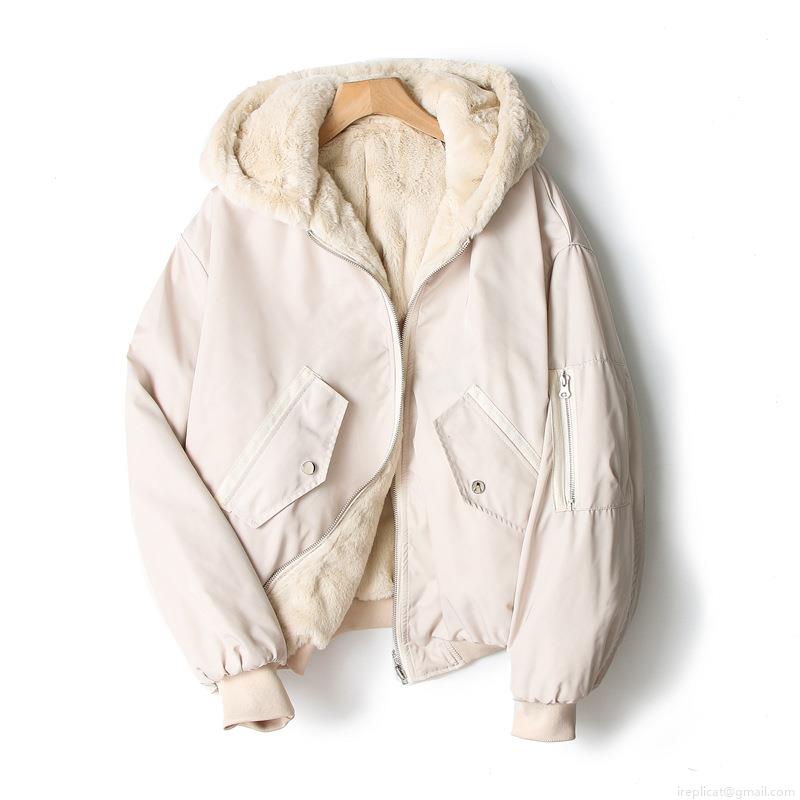 • Women's Retro Hooded Bomber Jacket Reversible Winter Warm Plush Lined Jacket Loose Short Padded Coat With Zipper And Sleeve Pocket For Women Streetwear