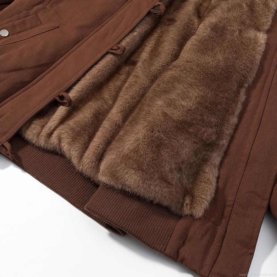 Solid Color, Hooded Design, Ribbed Seam, Work Pockets, Detachable Fur Collar, Zipper And Button Double Placket