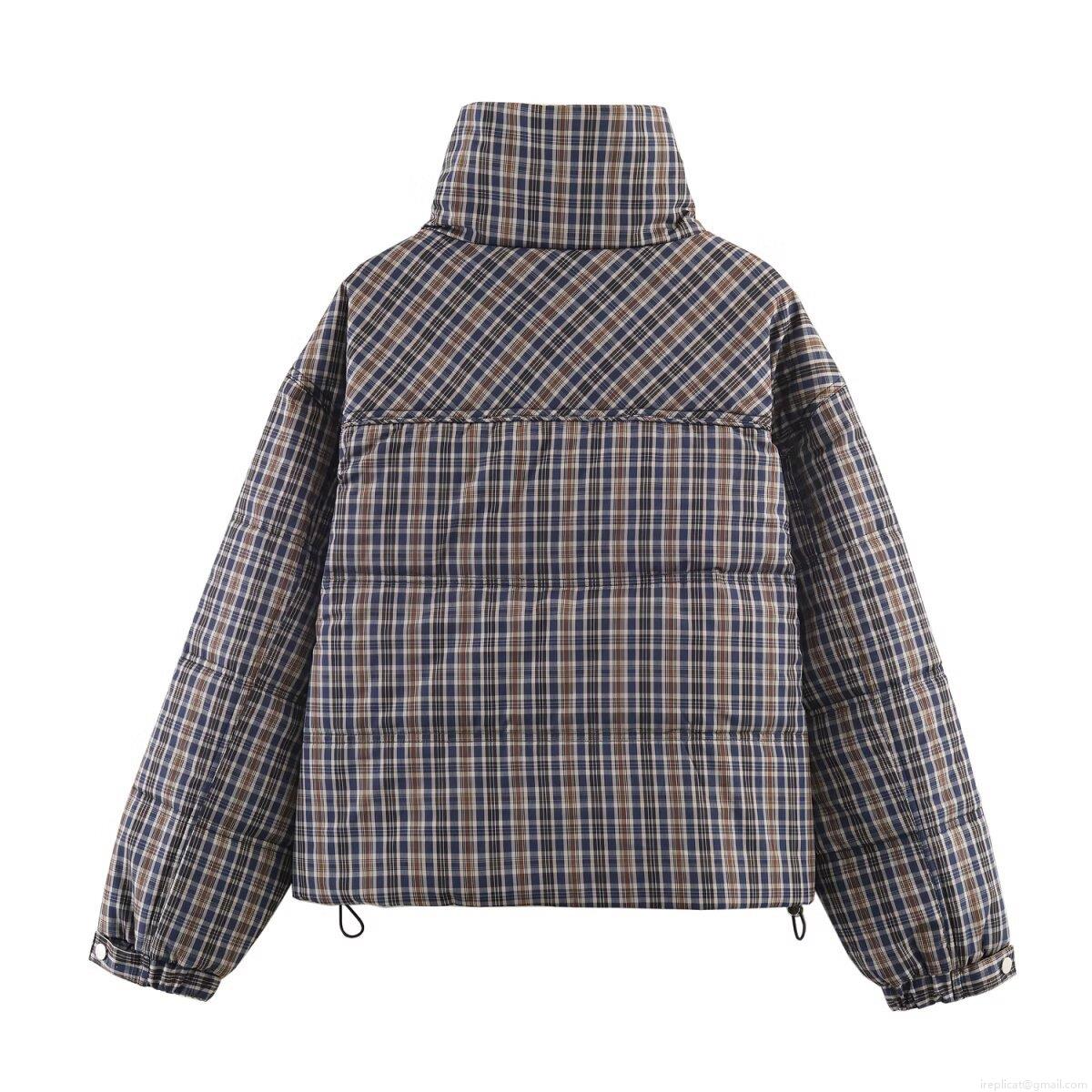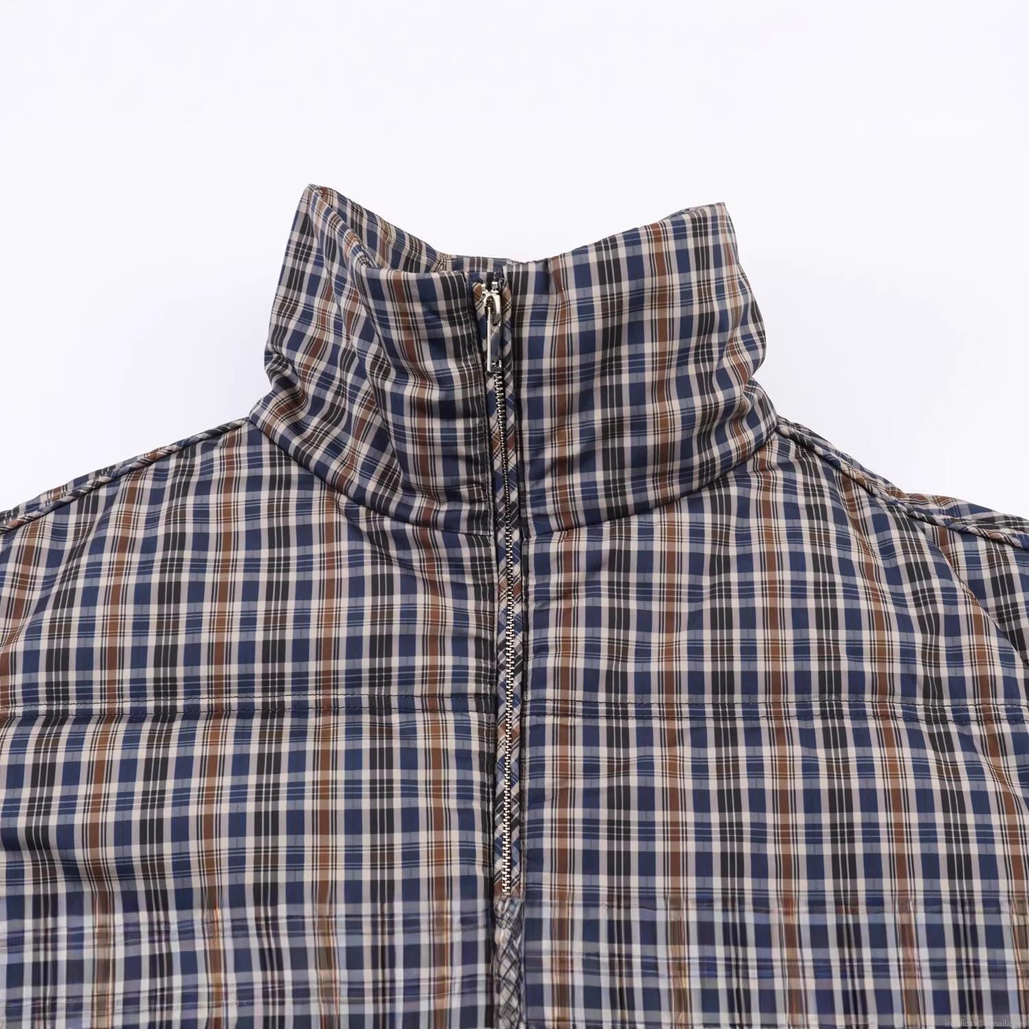 • Women's Retro Plaid Padded Jacket Stand Collar Zipper Loose Fit Quilted Winter Coat With Drawstring Hem Polyester Fabric Synthetic Fill