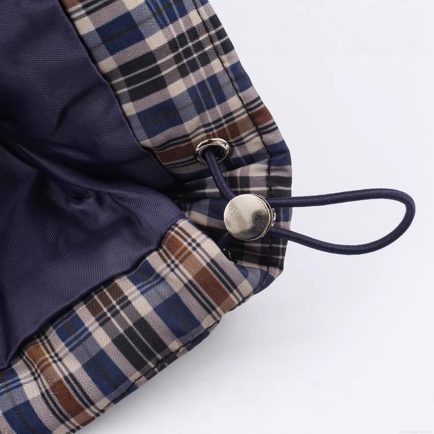 Gingham, Checkered Pattern, Zipper, Drawstring, Stand-up Collar