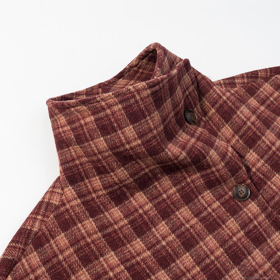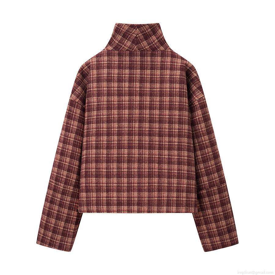 • Women's Retro Plaid Woolen Jacket Stand Collar Long Sleeve Loose Single Breasted Short Coat For Autumn Winter Casual Outwear
