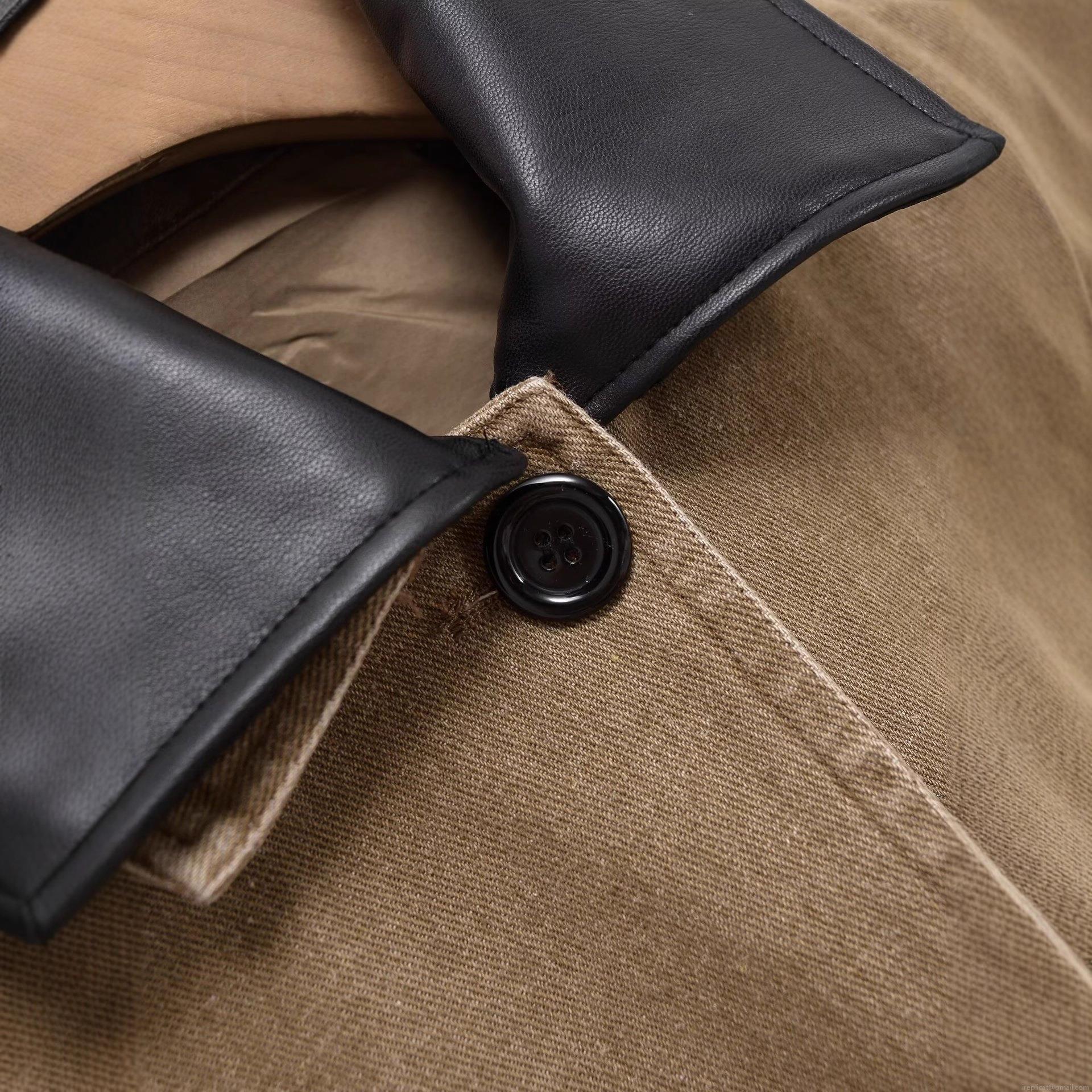 Solid Color, Color Blocking, Work Pockets, Contrasting Color Buttons, Pu Spliced ​​neckline