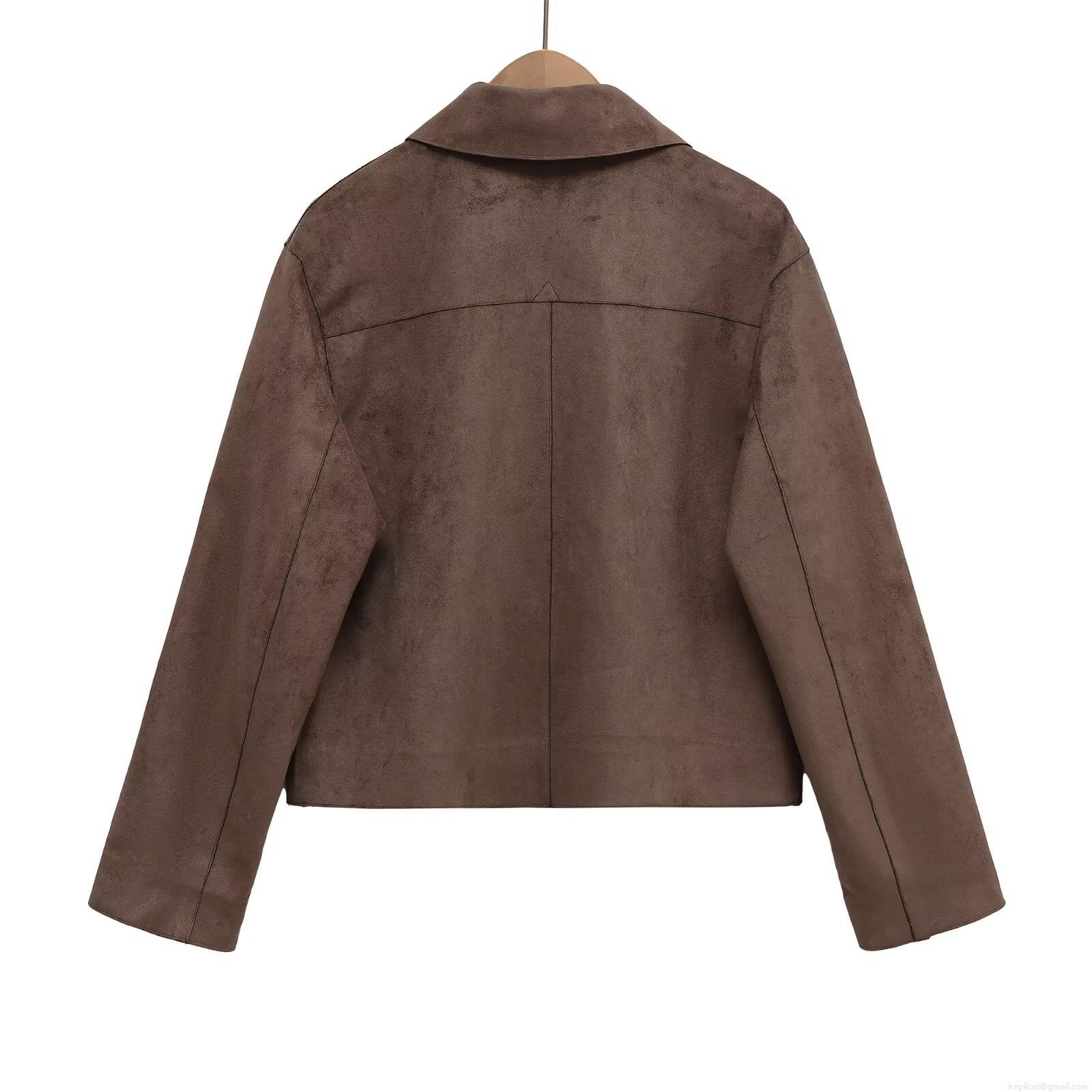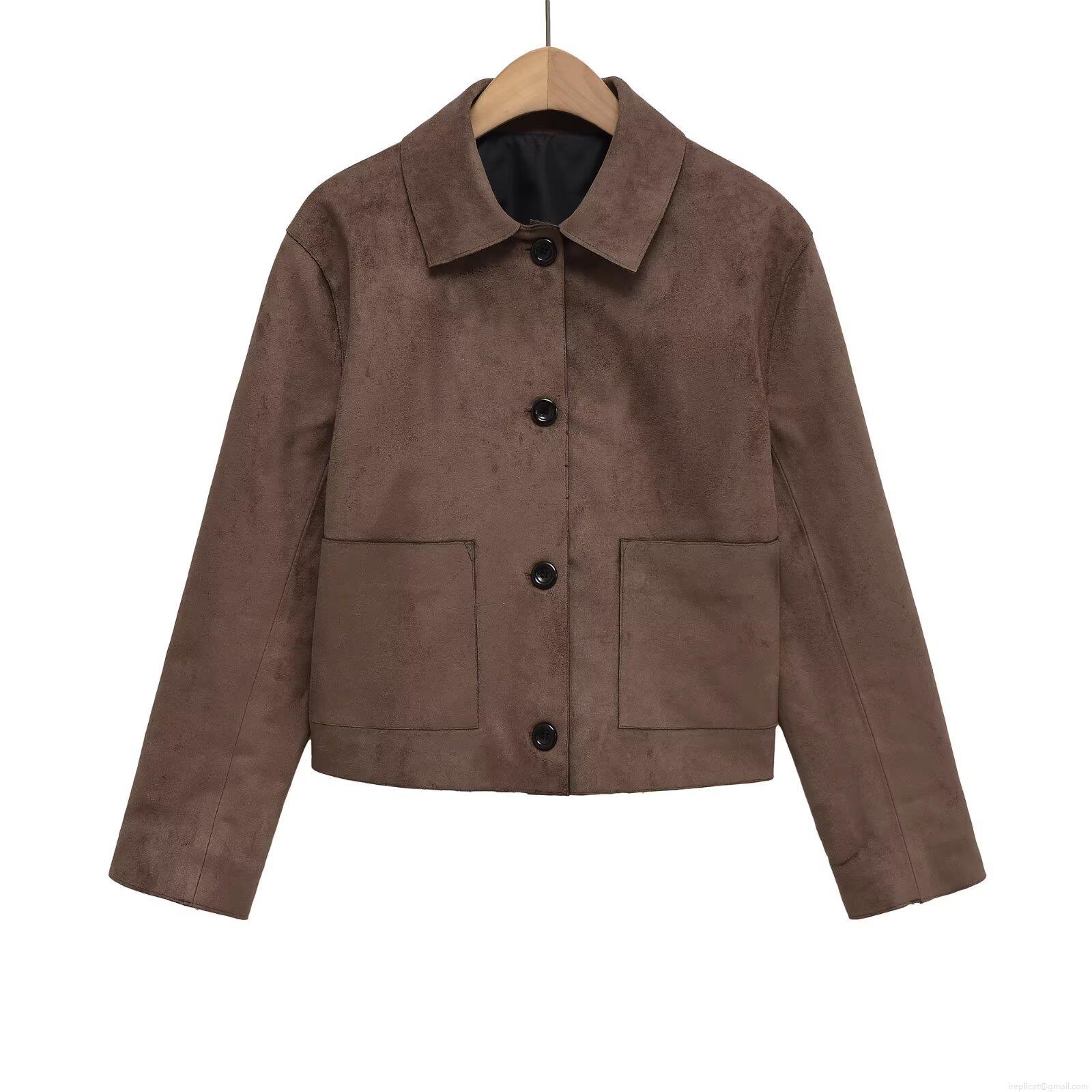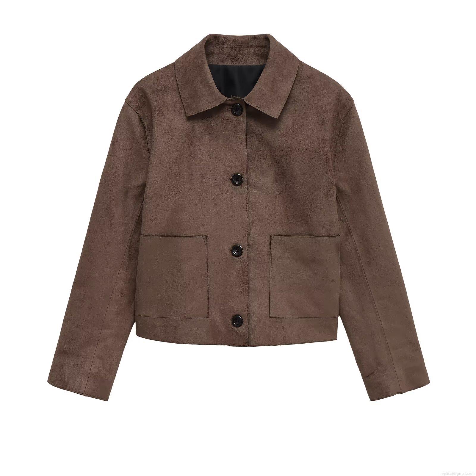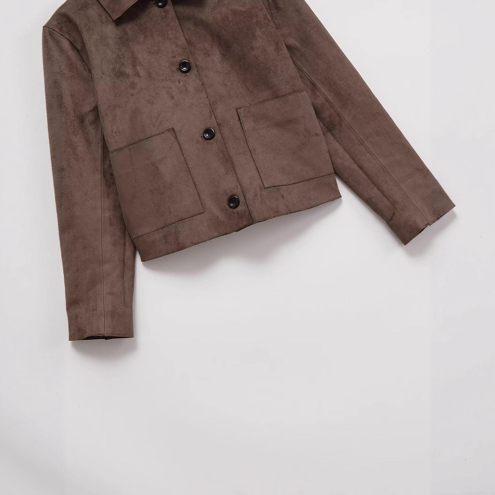• Women's Retro Suede Texture Lapel Jacket Single Breasted Baseball Coat With Large Pockets Solid Color Streetwear Outerwear For Autumn Winter