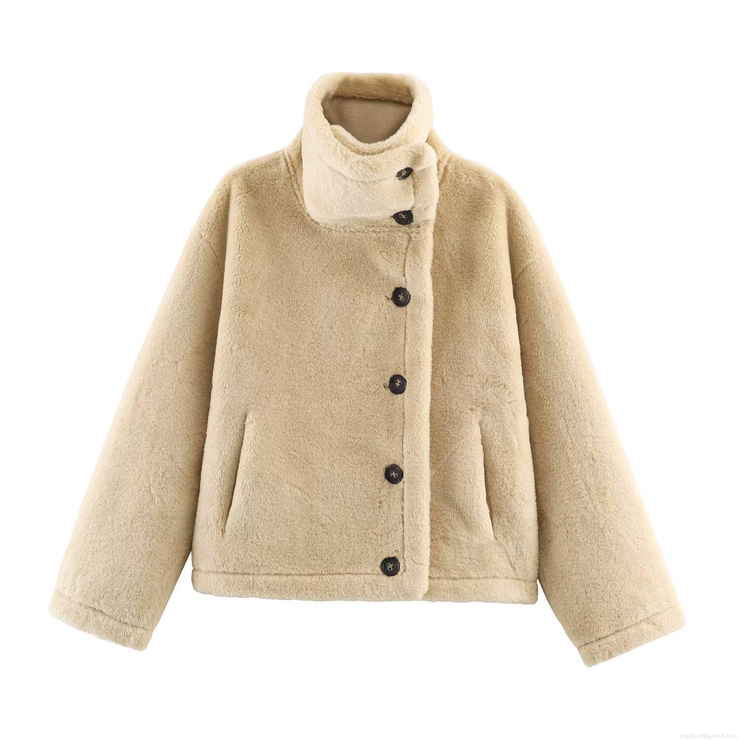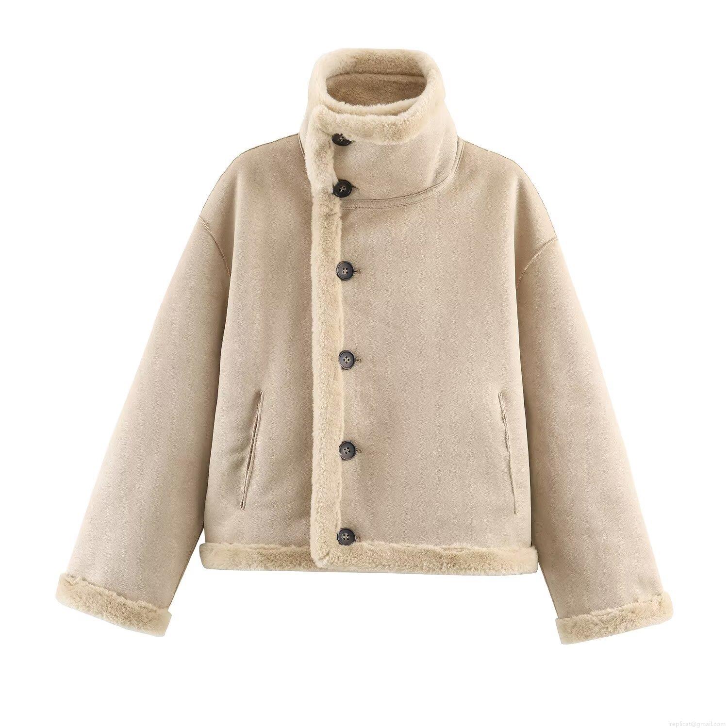 Women's Reversible Faux Fur Jacket Warm Sherpa Lined Suede Coat High Neck Button Down Outerwear For Winter Fall Streetwear Casual Lady
