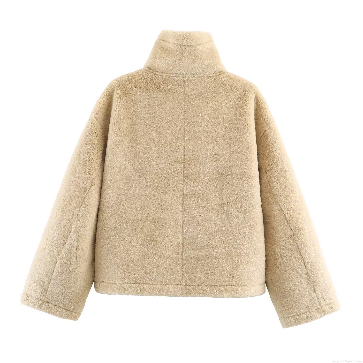Women's Reversible Faux Fur Shearling Jacket Suede Lambswool Splicing Coat Stand Collar Single Breasted Warm Streetwear Loose Outerwear