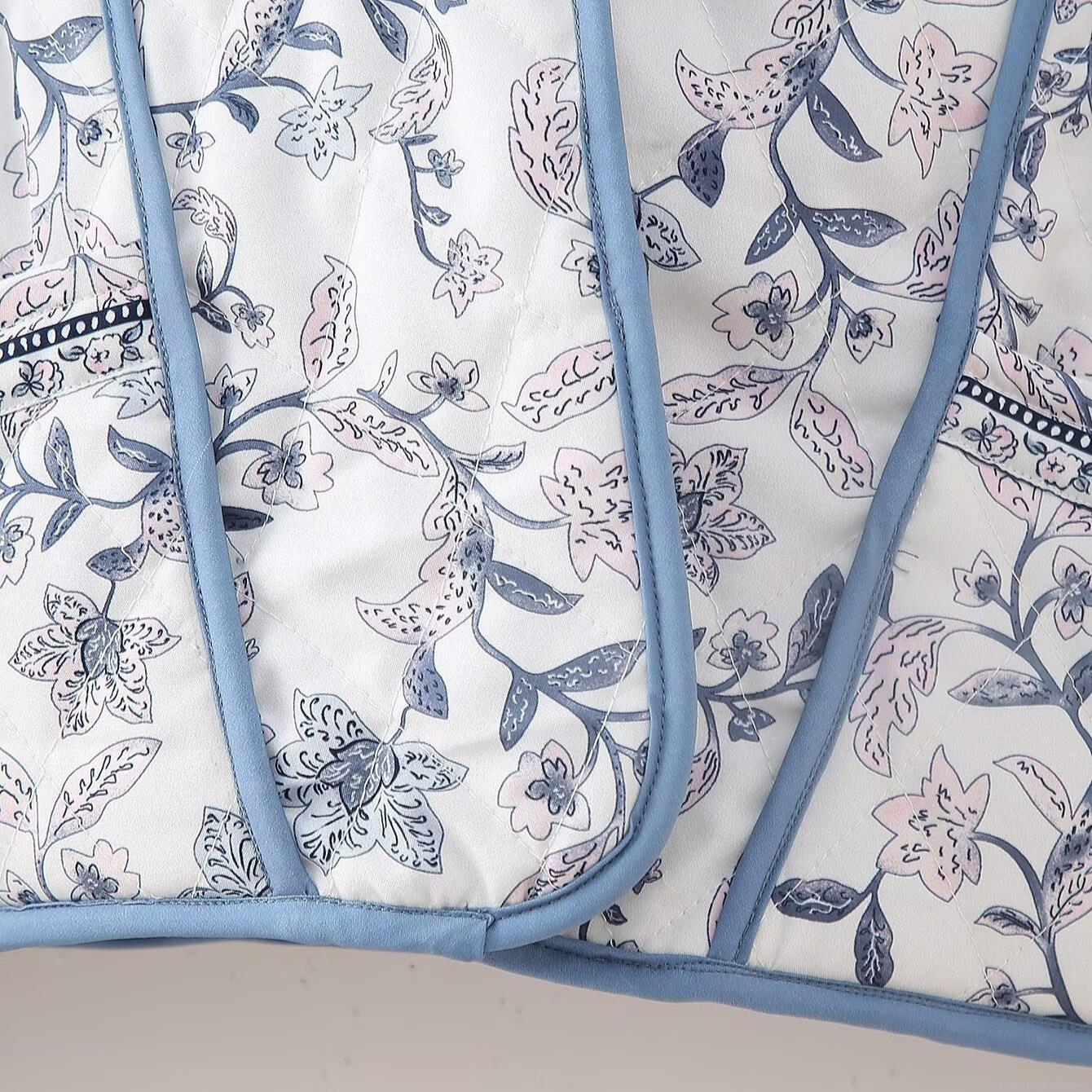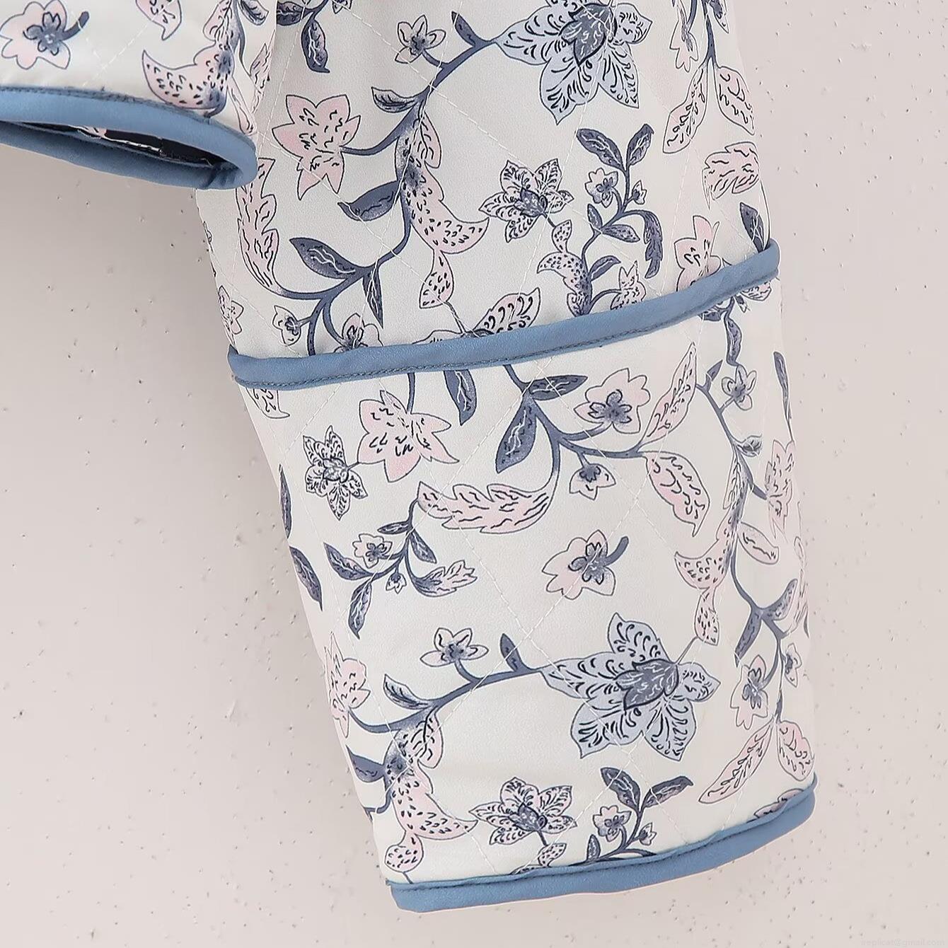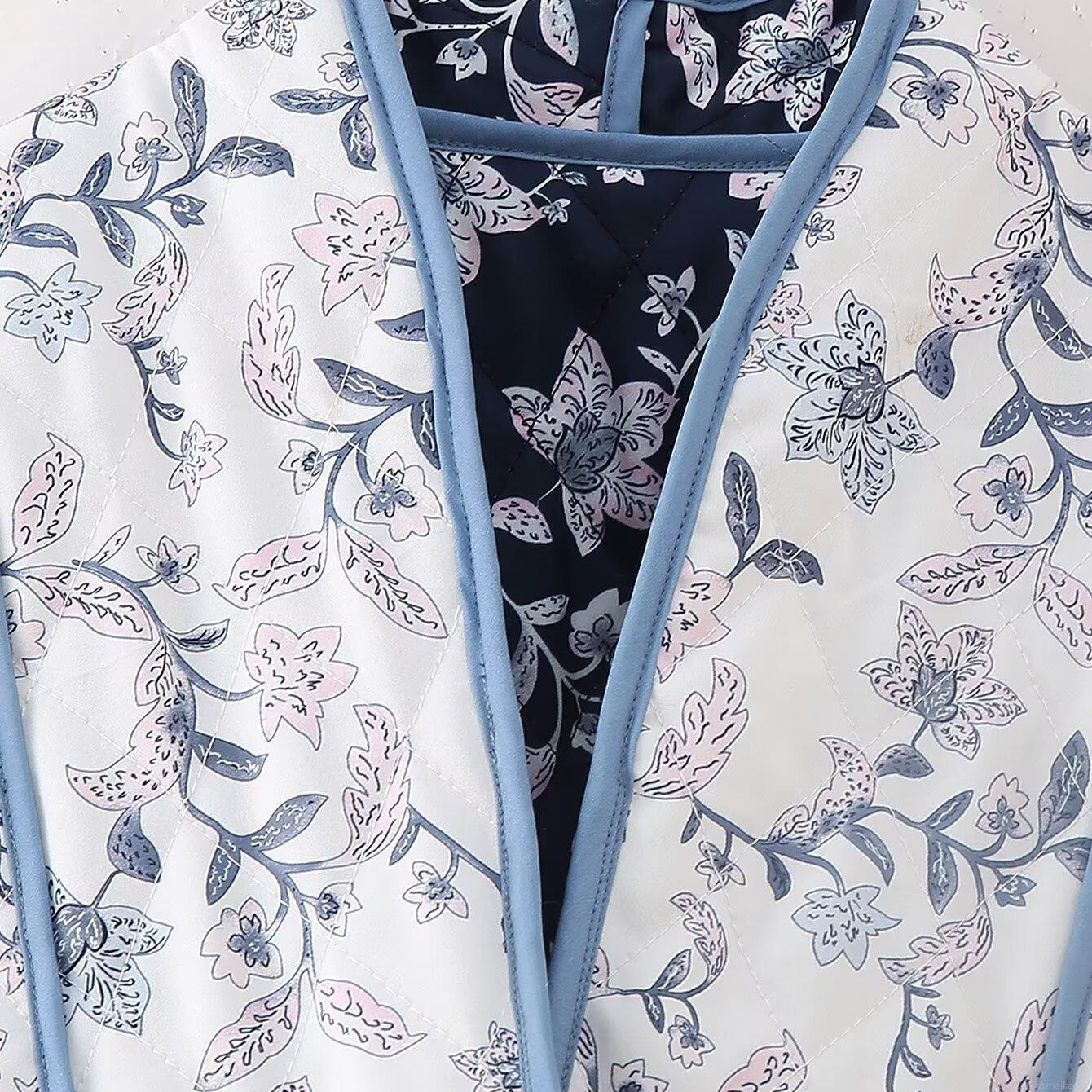 Women's Reversible Quilted Floral Jacket Padded Lightweight Coat V-Neck Long Sleeve Casual Outerwear Contrast Binding Print Fall Fashion Coat