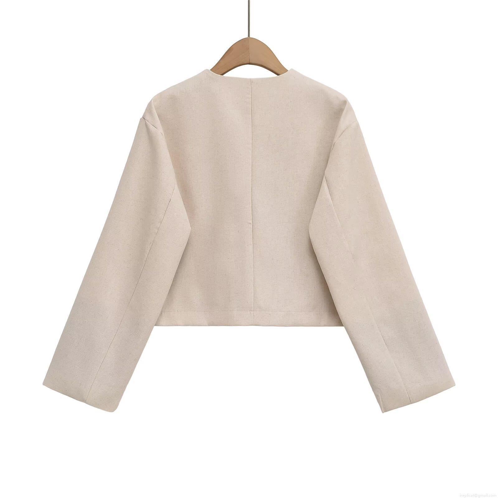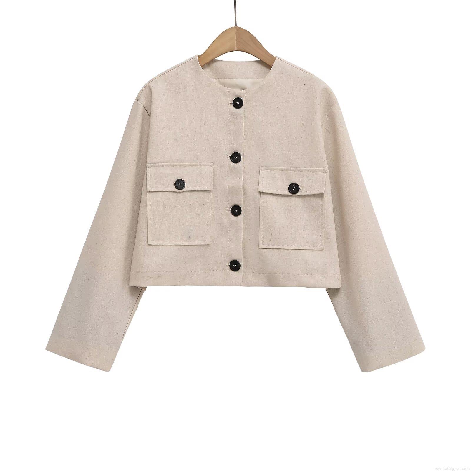 • Women's Round Neck Short Jacket Button Front Long Sleeve Cropped Baseball Uniform Solid Color Street Casual Outerwear Polyester Coat