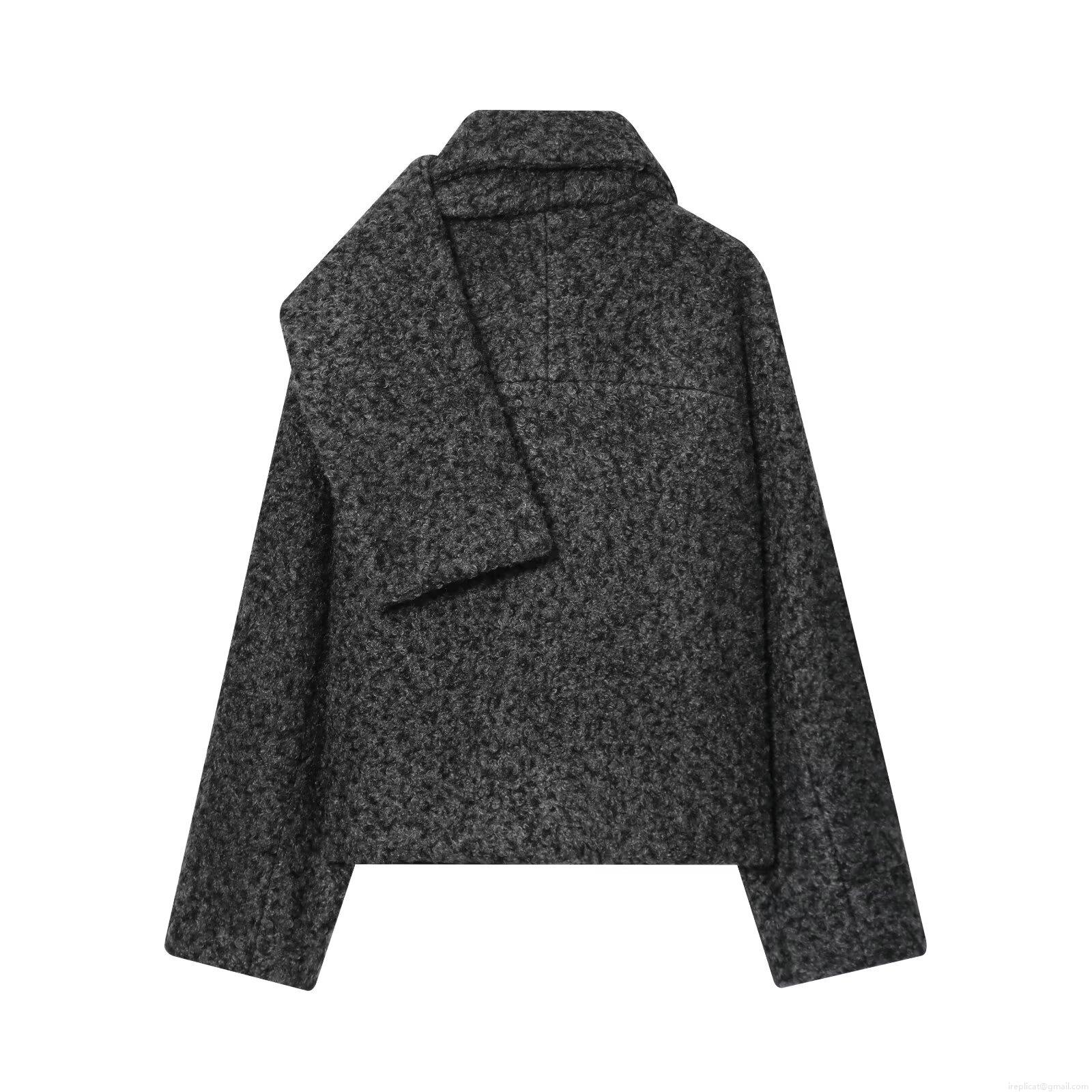 • Women's Scarf Collar Wool Blend Jacket Single Breasted Winter Warm Loose Coat Casual Fashion Streetwear Outerwear For Lady Cozy Stylish Fall Outfit