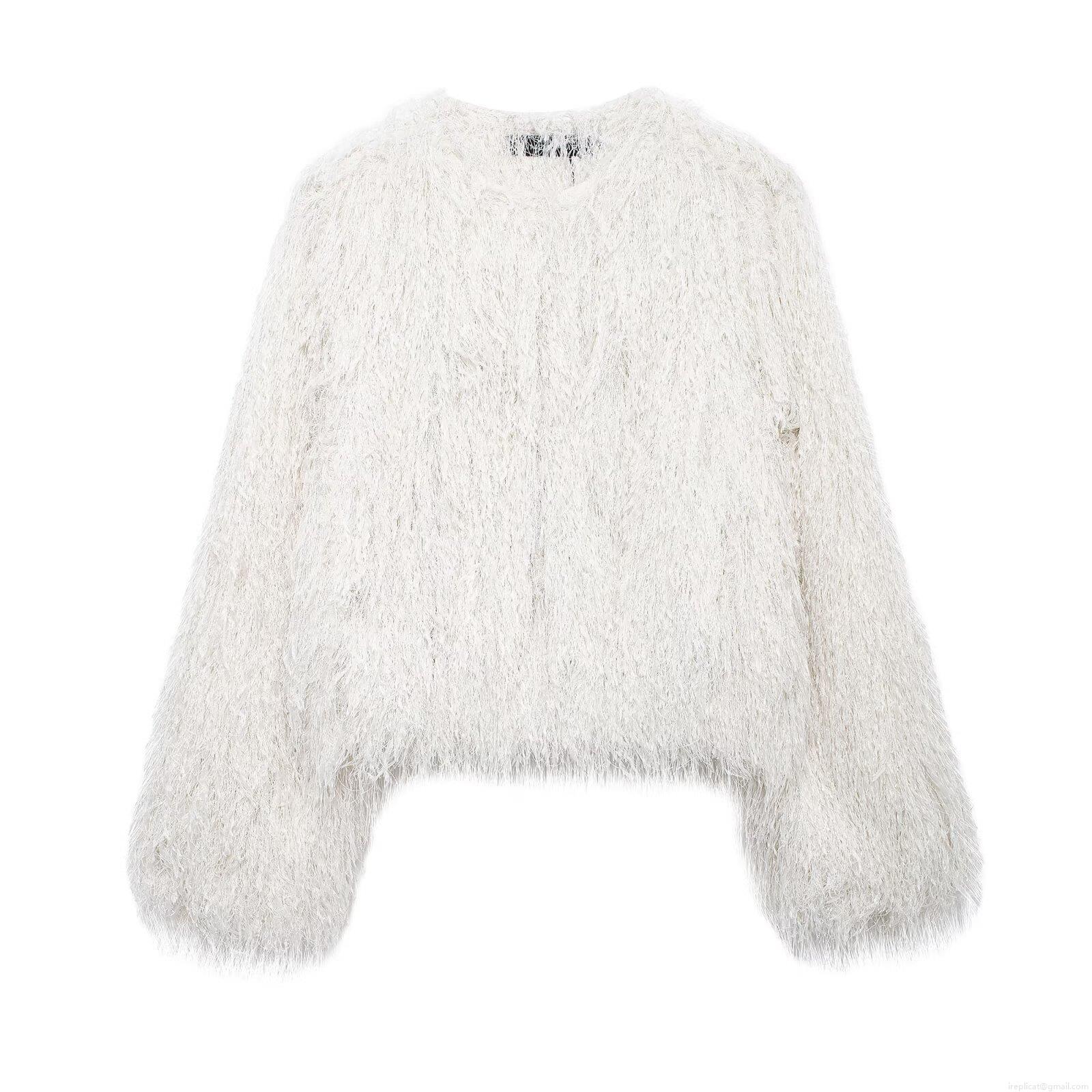 • Women's Shaggy Long Sleeve Short Coat Faux Feather Fringe Round Neck Jacket Solid Color Polyester Streetwear Warm Outwear For Autumn Winter Party