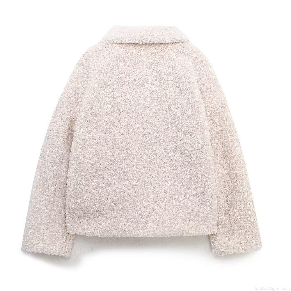 Women's Sherpa Fleece Jacket Autumn Winter Warm Solid Color Lapel Long Sleeve Single Breasted Coat With Pockets Casual Streetwear Outerwear