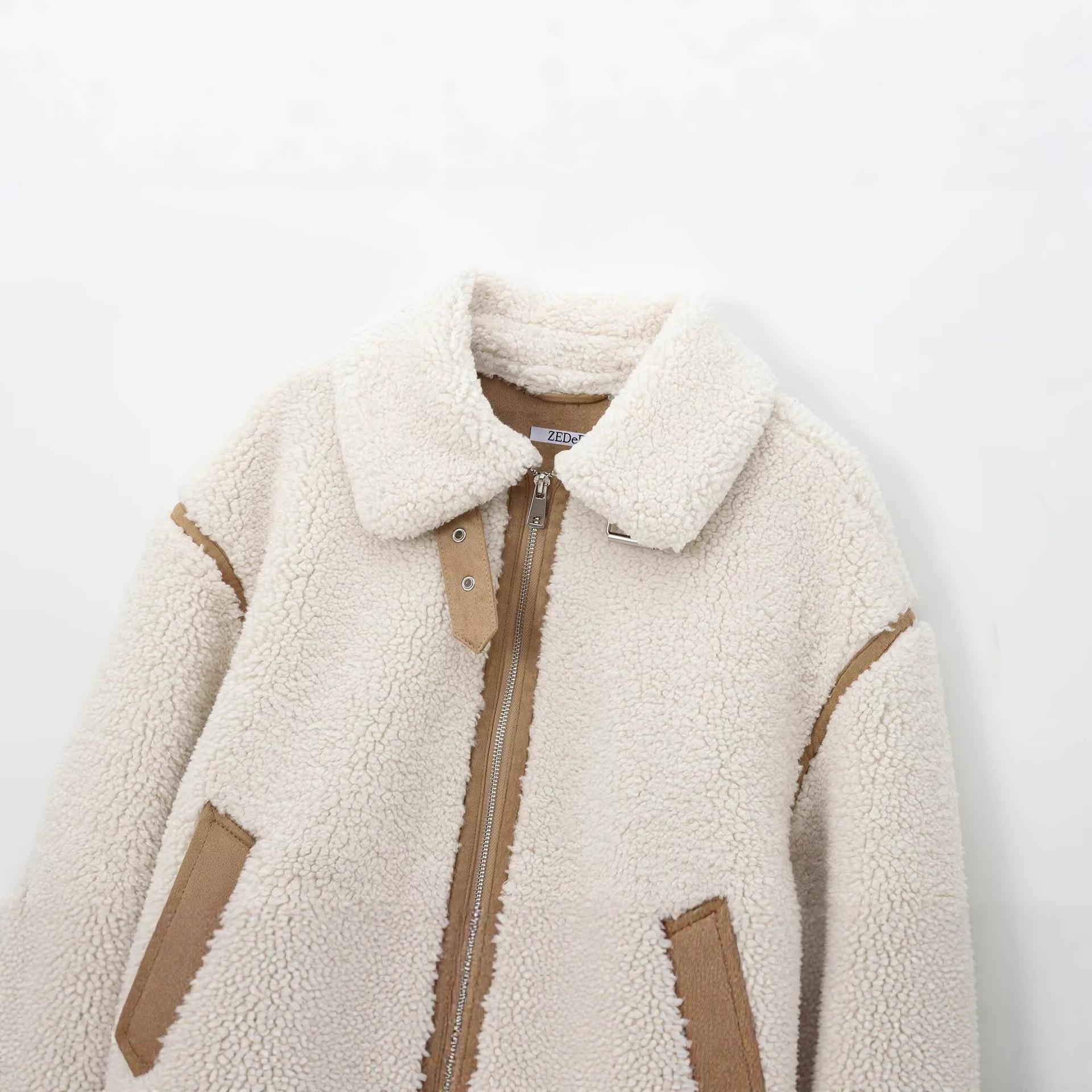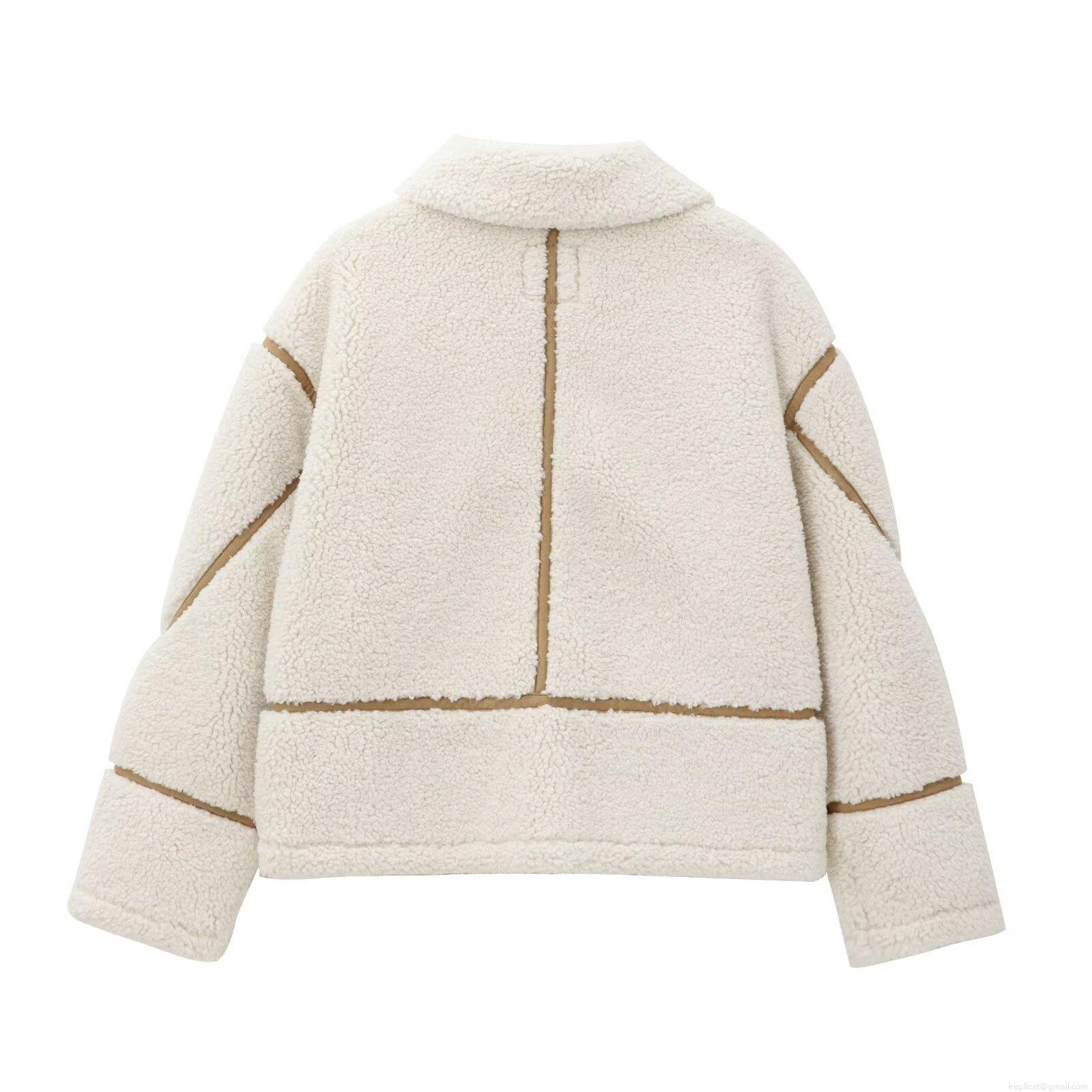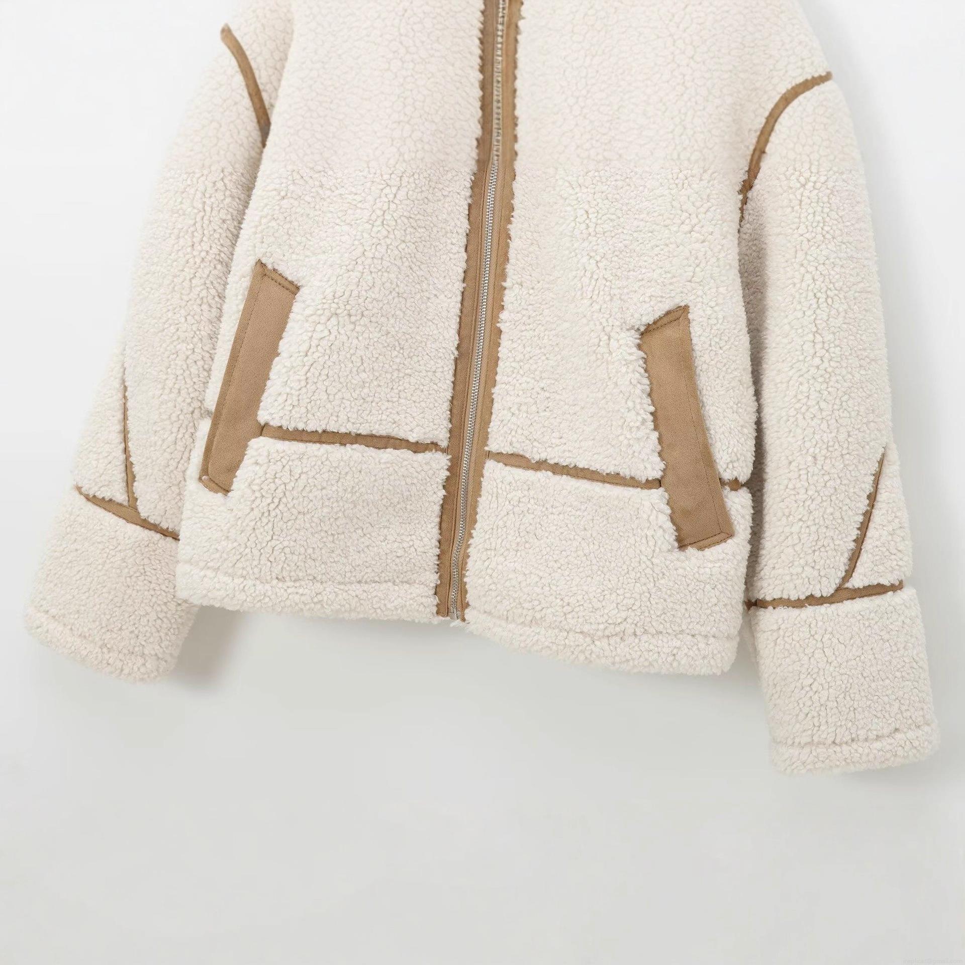 • Women's Sherpa Fleece Jacket Contrast Piping Faux Shearling Coat Casual Loose Lapel Zip Up Outerwear For Winter Fall