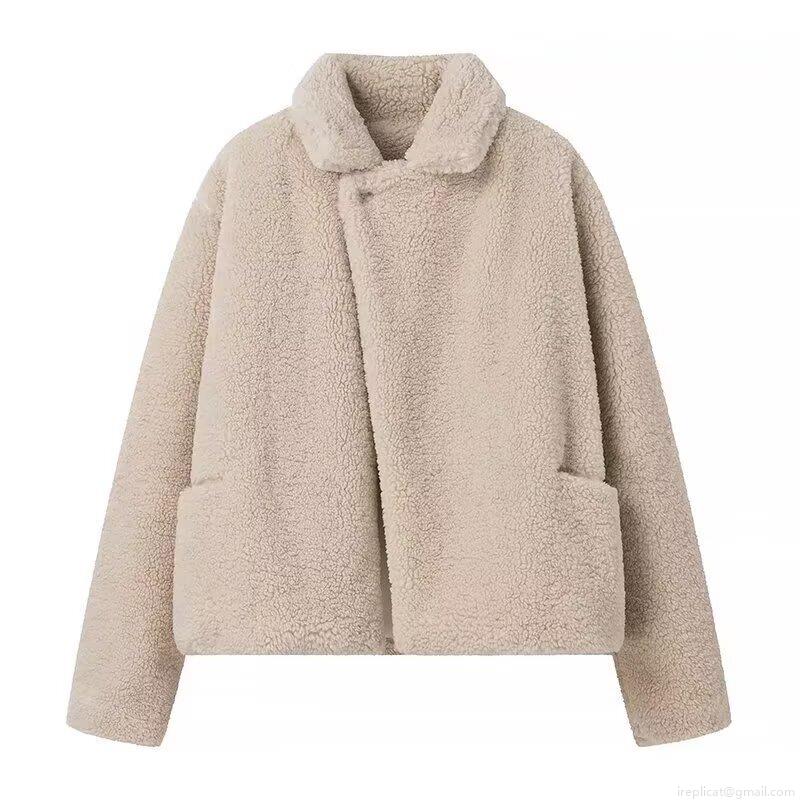 Women's Sherpa Fleece Jacket Turn-down Collar Button Up Asymmetric Woolen Coat Thick Winter Autumn Warm Outwear Casual Streetwear Apricot Beige