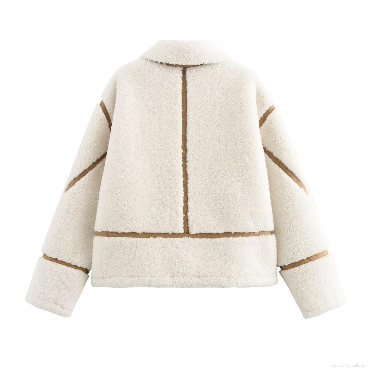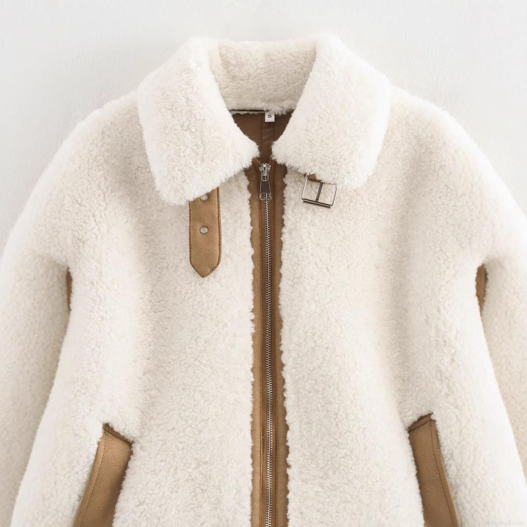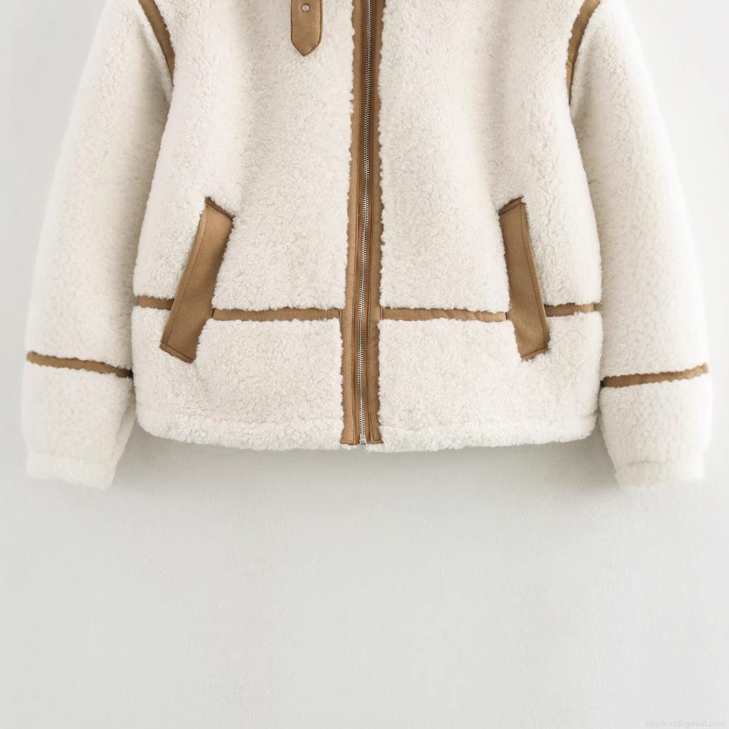 • Women's Sherpa Fleece Jacket Warm Loose Fit Patchwork Coat With PU Leather Piping Zipper Long Sleeve Casual Outerwear For Women Winter Fall