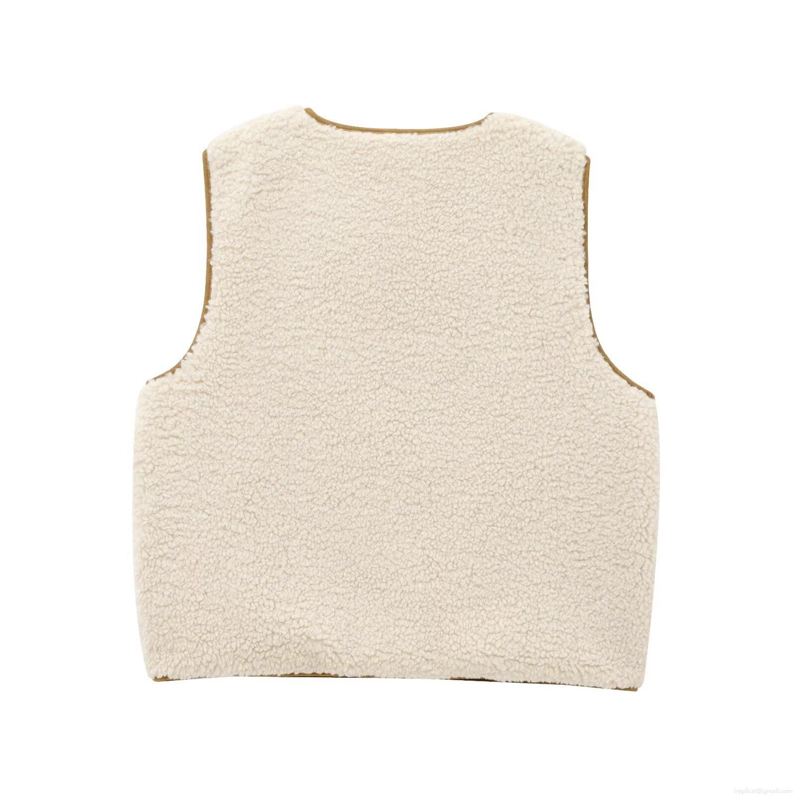 • Women's Sherpa Fleece Vest Fashion Contrast Piping Tie Front Waistcoat Sleeveless Warm Sherpa Jacket For Winter Daily Wear