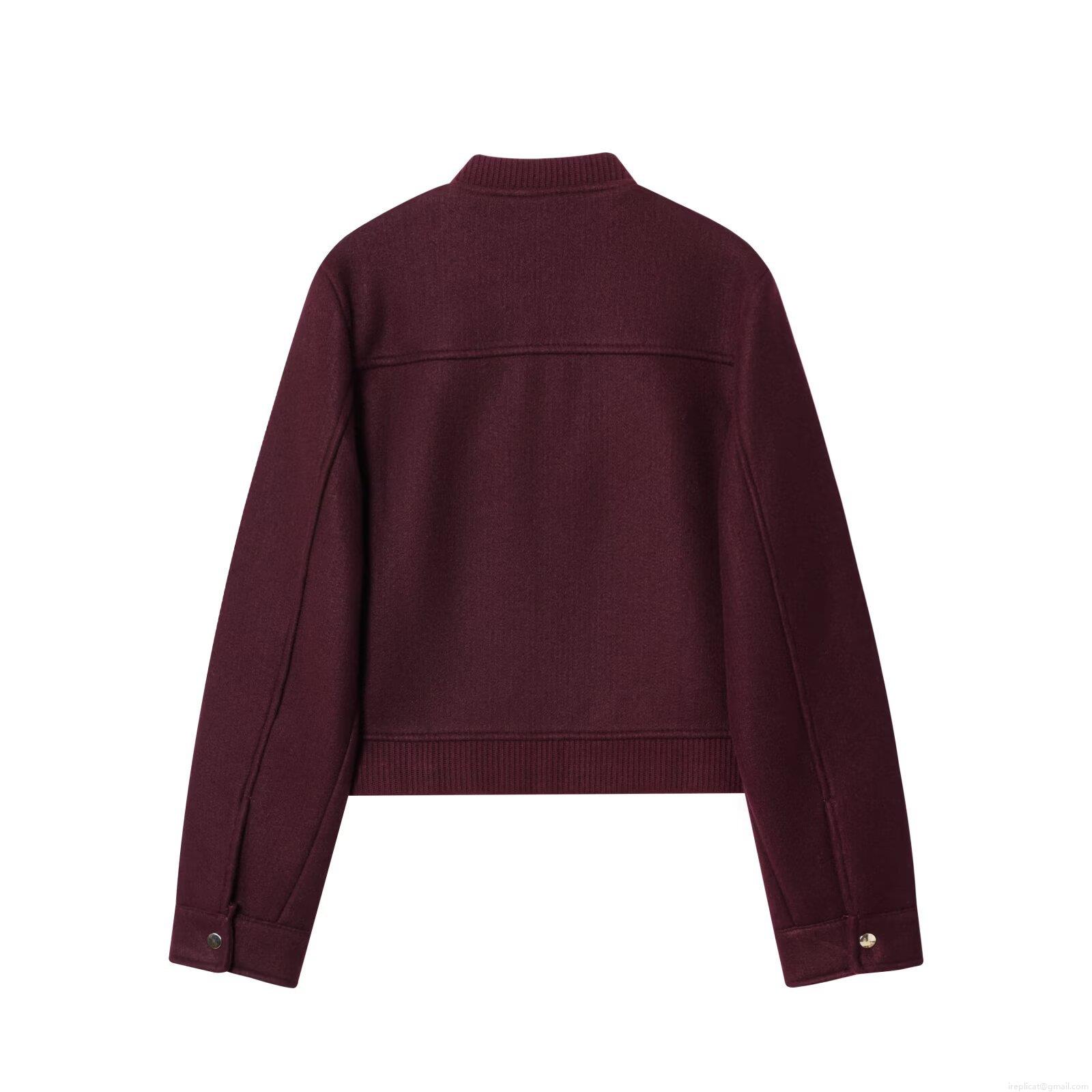 Women's Short Bomber Jacket 100% Polyester Burgundy Zipper Long Sleeve Pocket Outerwear Streetwear Casual Coat For Autumn Winter