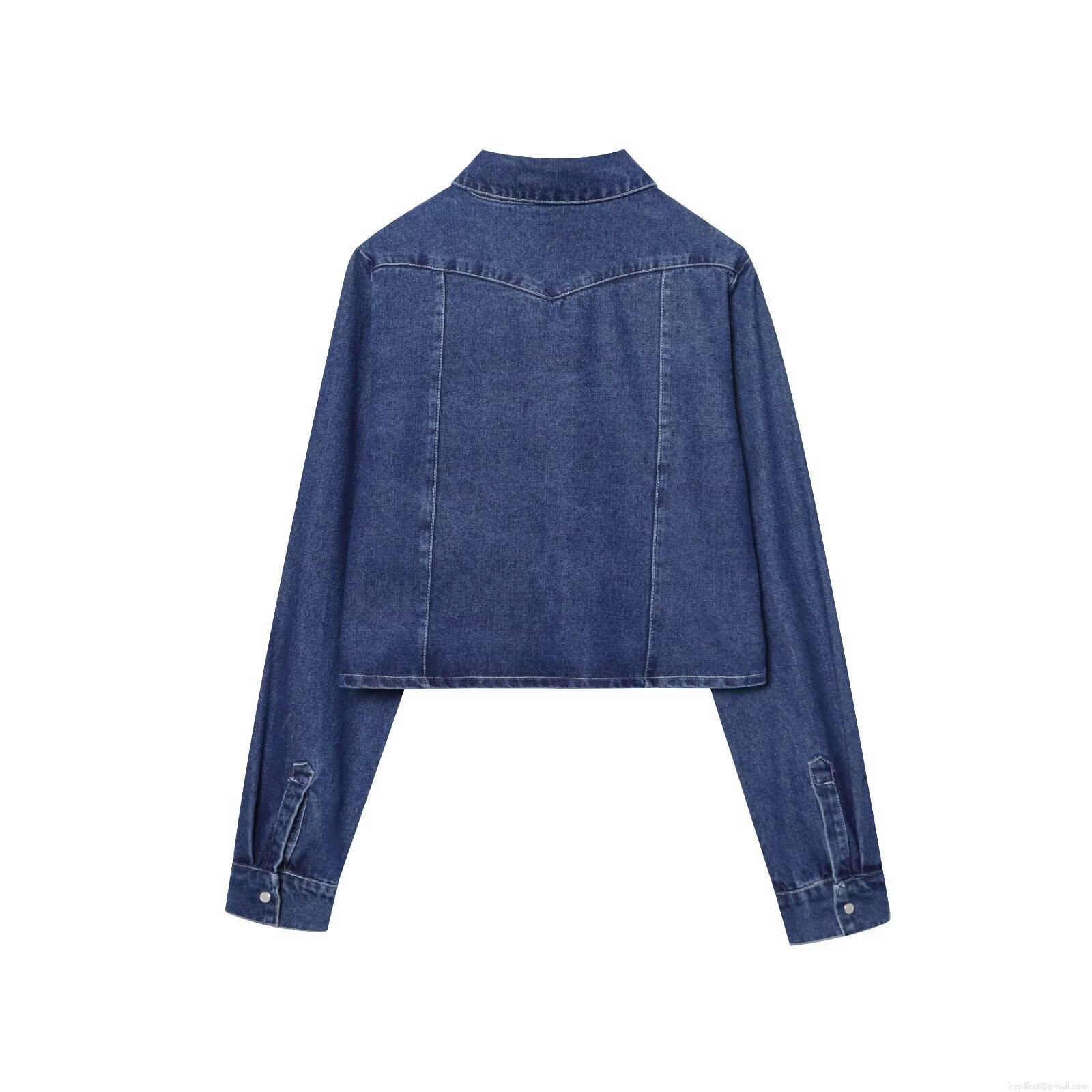 • Women's Short Denim Jacket Casual Cotton Blue Jean Coat With Pockets And Pearl Buttons Long Sleeve Lapel Outwear For Women Fashion Streetwear