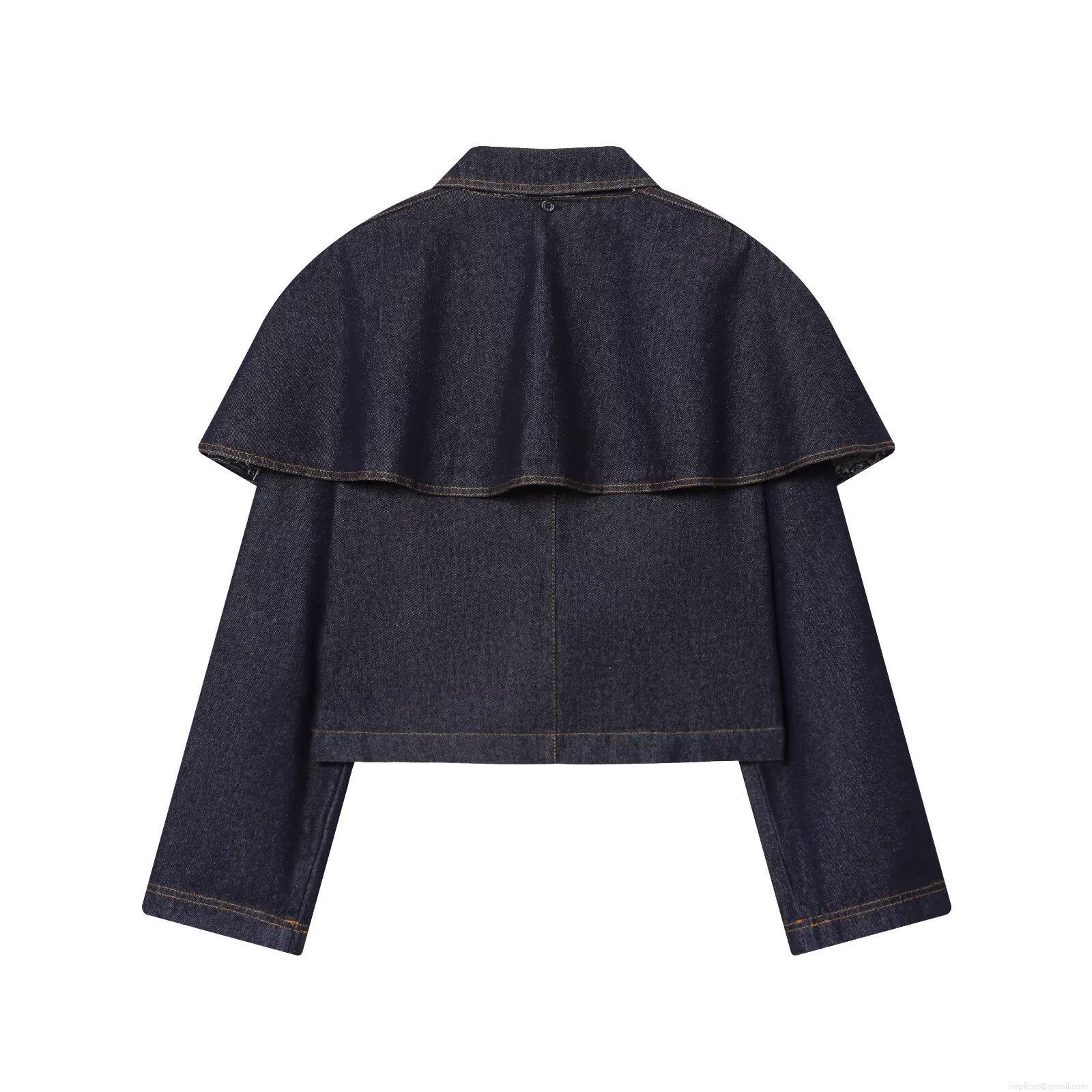 Women's Short Denim Jacket With Cape Decoration Single Breasted Turn Down Collar Long Sleeve Street Style Autumn Polyester Blend Denim Outerwear For Women