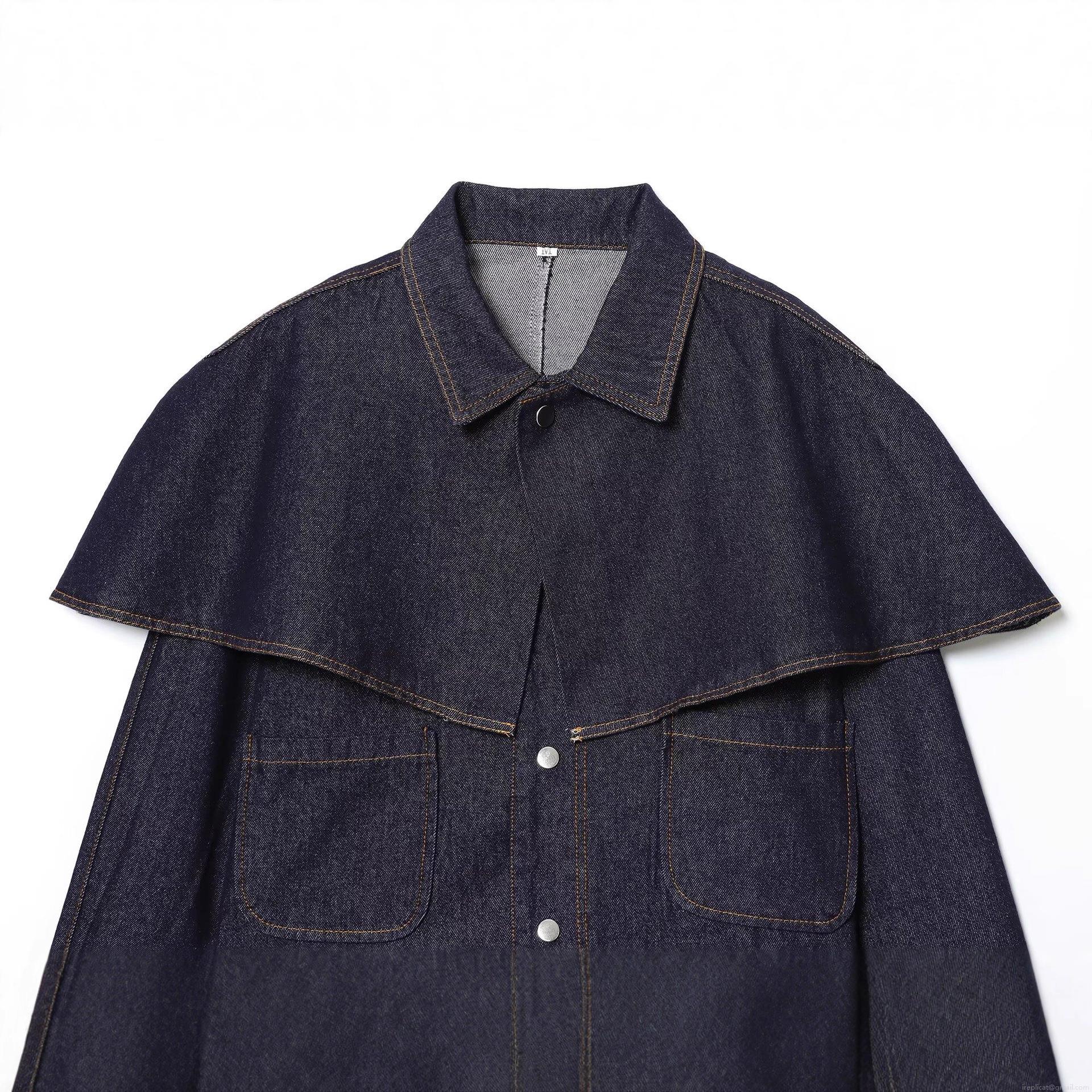 • Women's Short Denim Jacket With Cape Decoration Single Breasted Turn Down Collar Long Sleeve Street Style Autumn Polyester Blend Denim Outerwear For Women