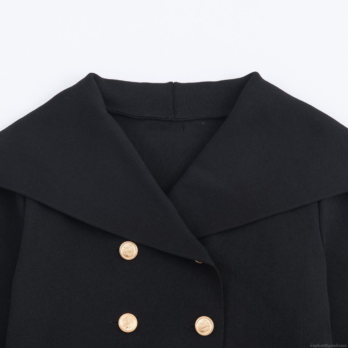 Women's Short Double Breasted Knitted Jacket With Sailor Collar Gold Buttons Casual Solid Color Long Sleeve Outerwear For Ladies