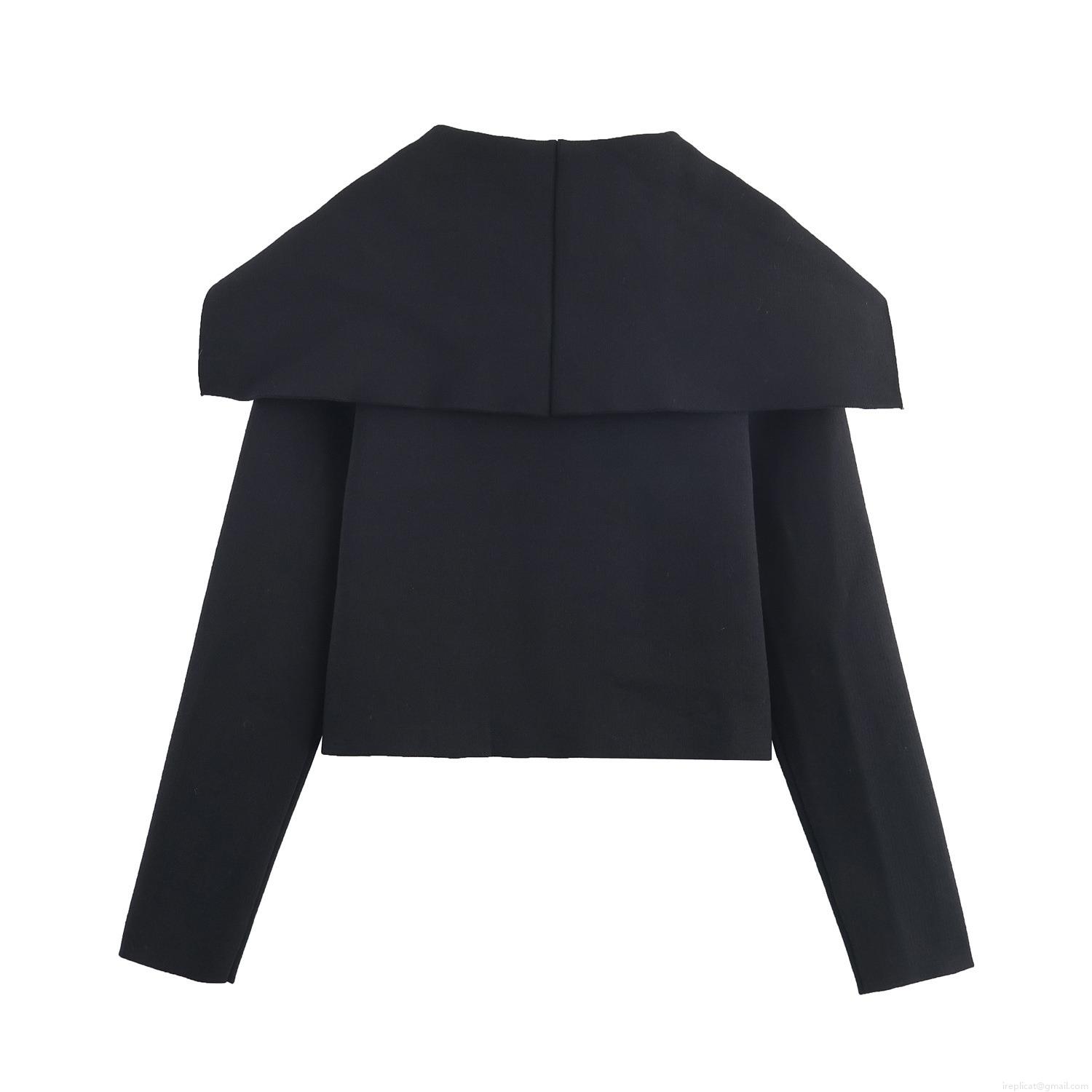 • Women's Short Double Breasted Knitted Jacket With Sailor Collar Gold Buttons Casual Solid Color Long Sleeve Outerwear For Ladies